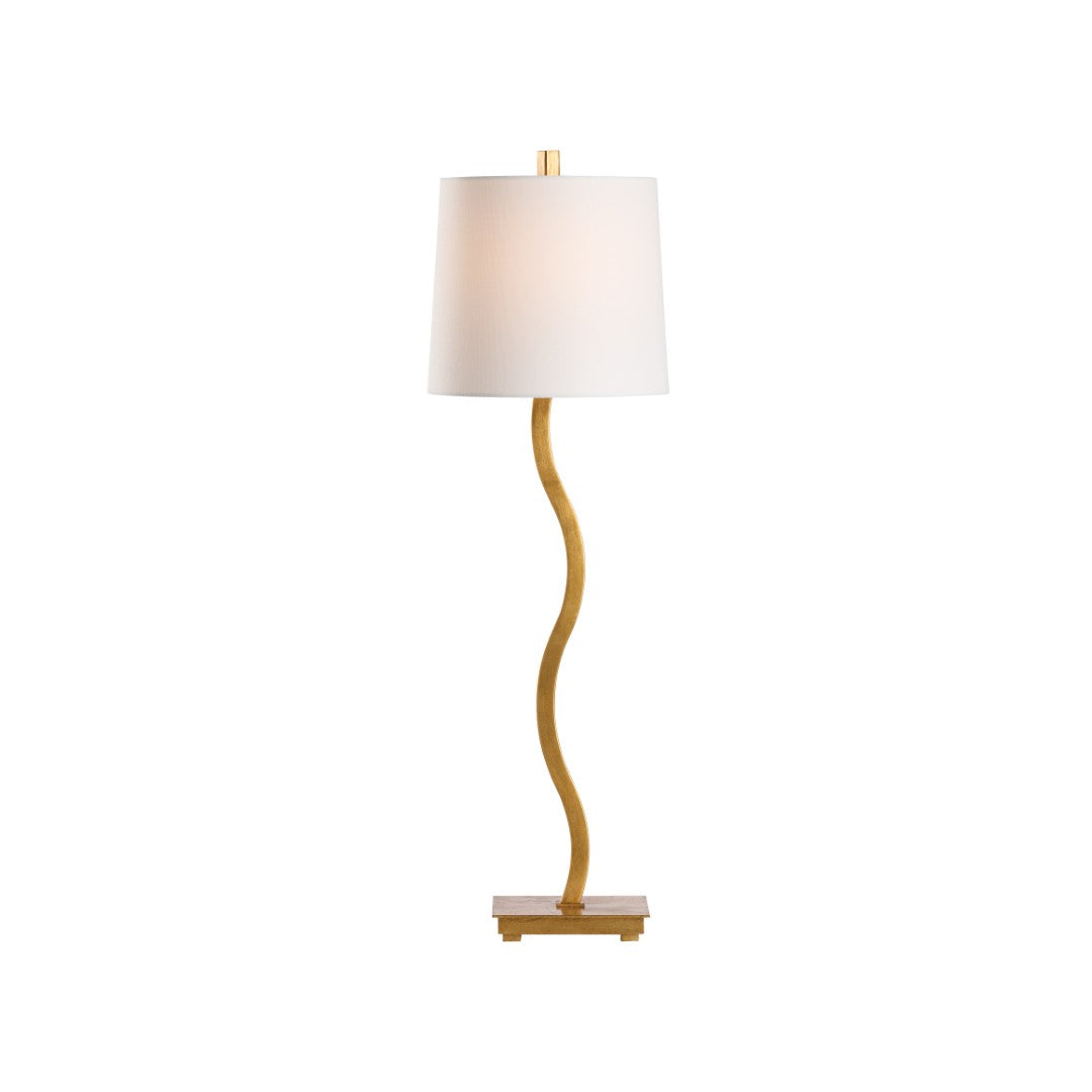 Elevate your living space with this refined buffet lamp that blends classic elegance and contemporary minimalism. Its slender, gently curved silhouette and warm gold-leaf finish create a soft, inviting glow—ideal for adding a touch of luxury to mantels, console tables, or bedside surfaces. Designed by Jamie Merida, the lamp balances form and function for a polished, timeless accent.