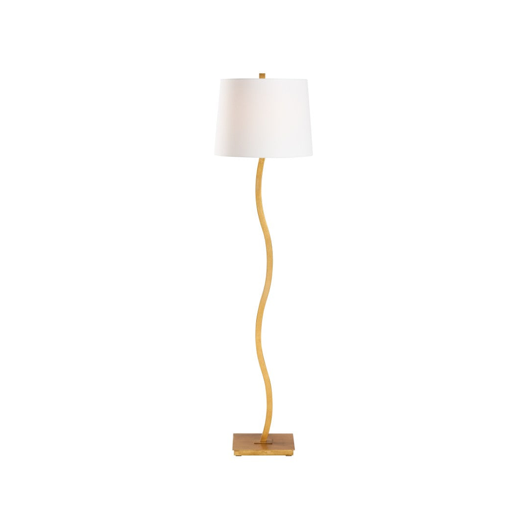 Add refined warmth and sculptural elegance to any room with this slender floor lamp. The Sway Floor Lamp’s subtle curves and warm gilt finish create a timeless focal point that provides soft, inviting illumination—equally suited to classic interiors and contemporary spaces. Designed by Jamie Merida, it blends understated luxury with functional lighting for living rooms, reading nooks, and entryways.