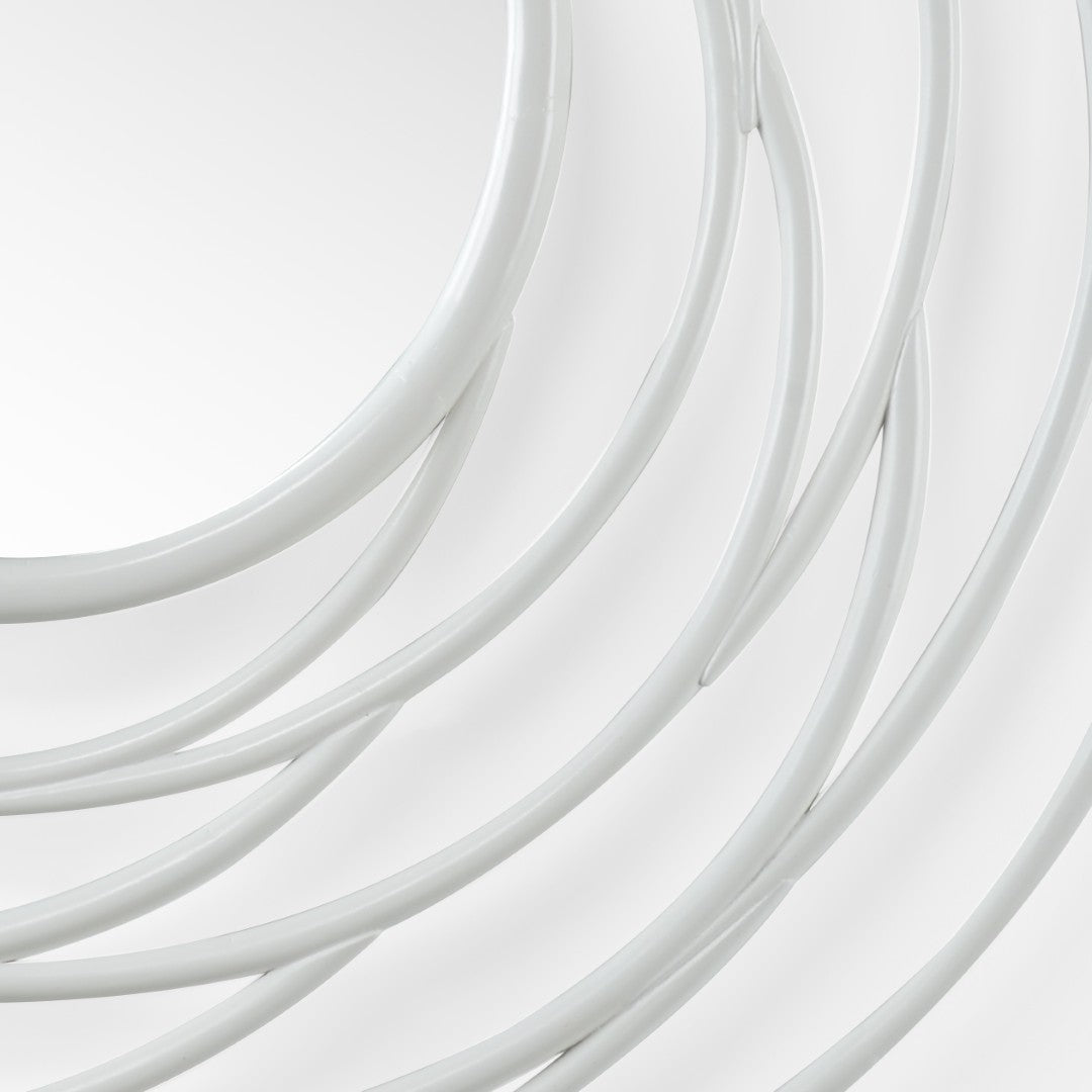 Add a fresh, sculptural focal point to any room with this elegant white Swirl Mirror. Inspired by organic rattan patterns and finished in a high-gloss lacquer, the mirror blends natural texture with modern simplicity to brighten spaces and reflect light while serving as a decorative centerpiece.