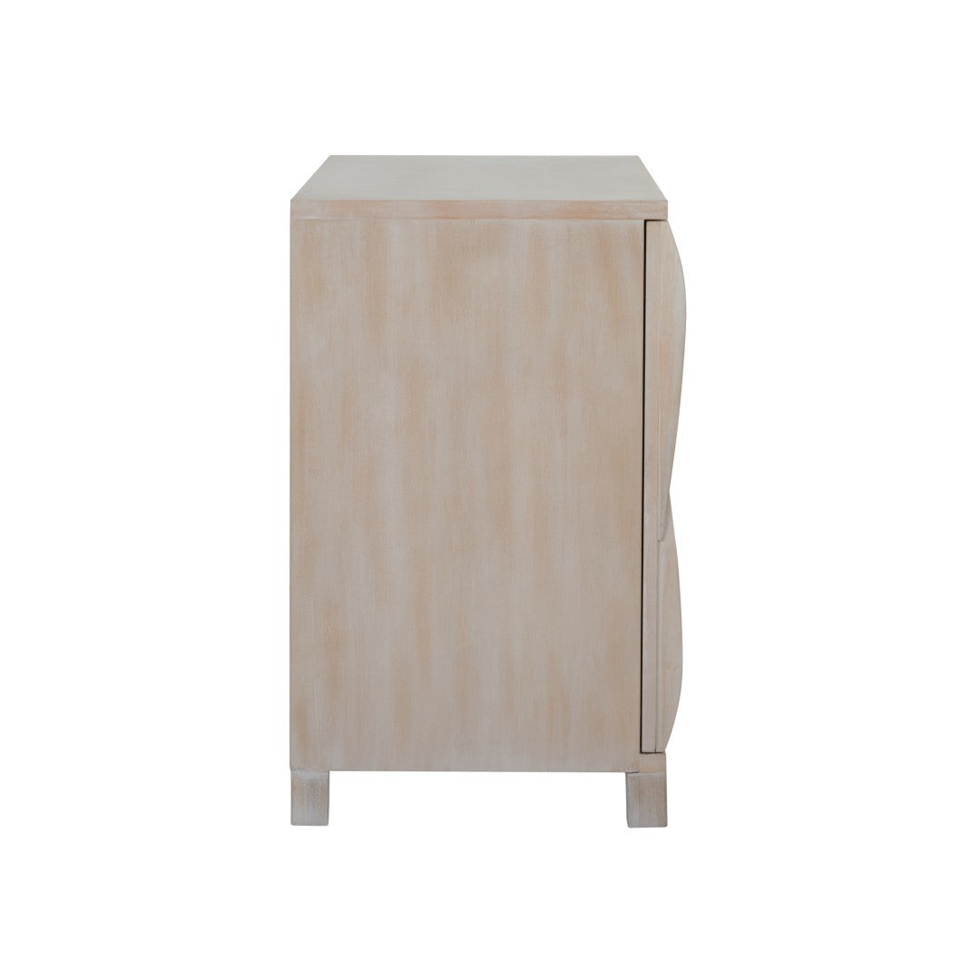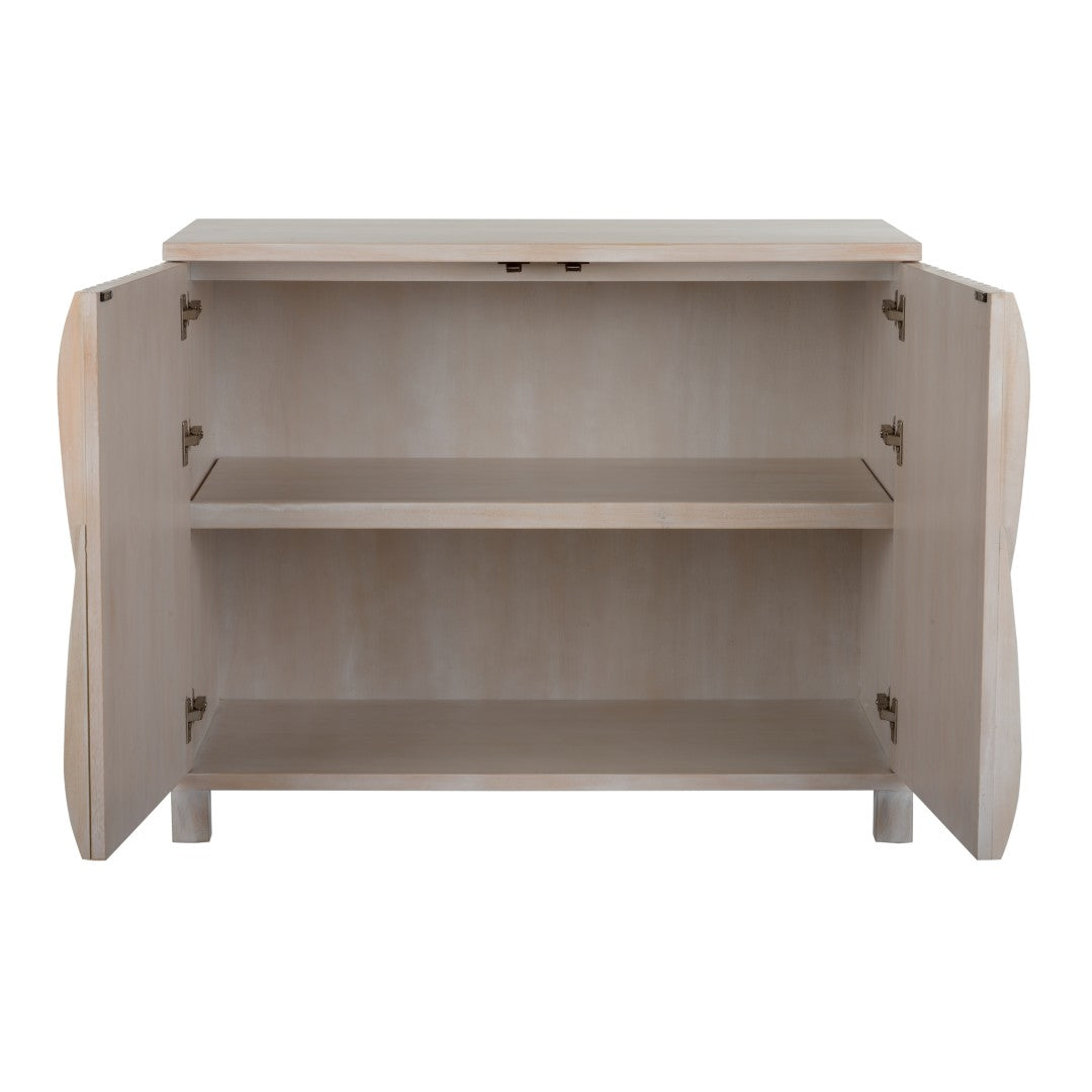 Elevate any room with the Trujillo Cabinet — a statement storage piece that combines organic texture with modern simplicity. Its whitewashed finish highlights the natural wood grain while wave-shaped cutouts add an earthy, handcrafted character. Thoughtfully designed for both form and function, this cabinet provides concealed storage with clean lines that complement a variety of interiors.