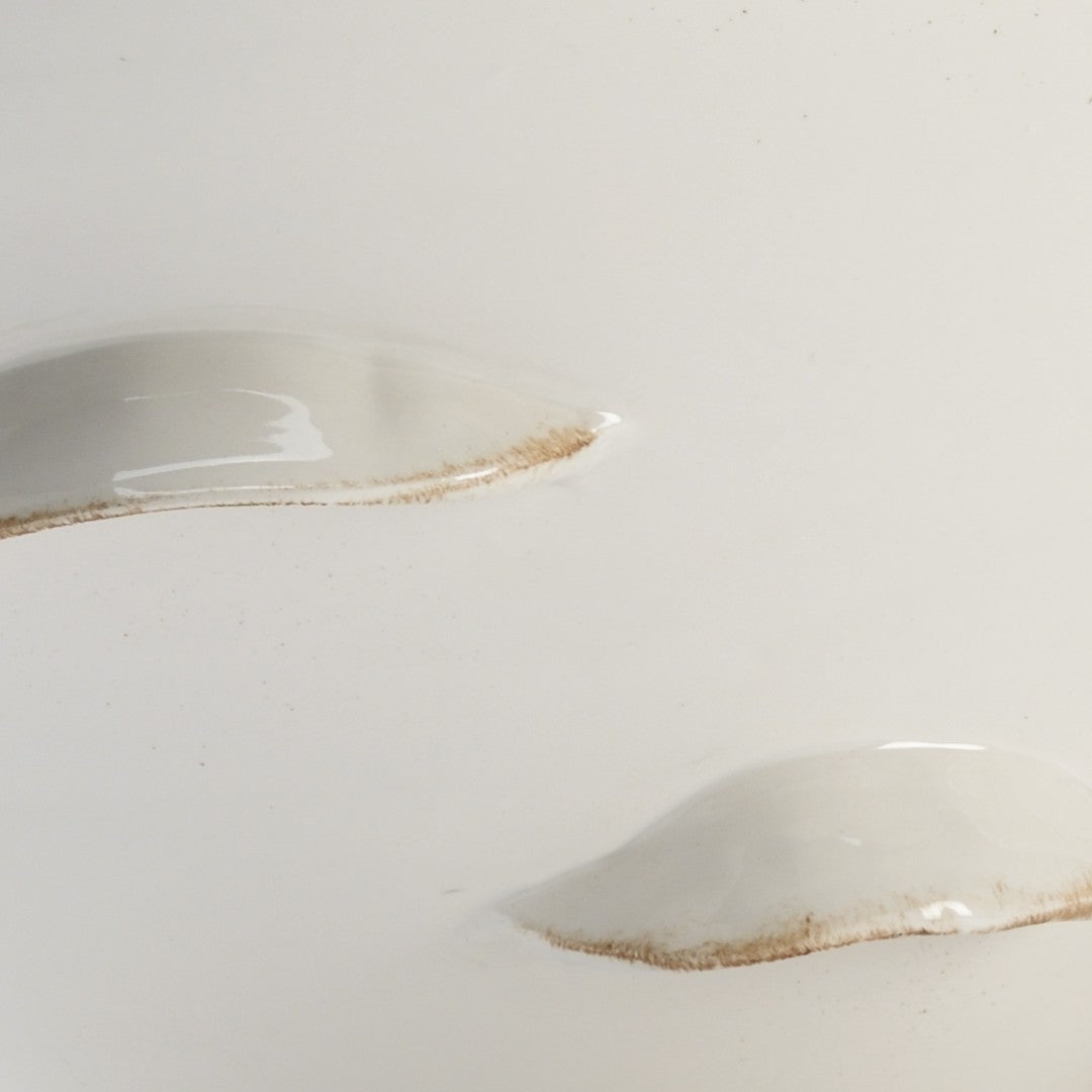 Elevate your tabletop or mantel with this hand-finished antique white ceramic bowl, featuring a subtle, sculptural wave pattern that catches light and adds texture to any room. Its timeless glaze and organic silhouette make it equally suited for decorative display or as a refined vessel for dried arrangements, potpourri, or seasonal accents.