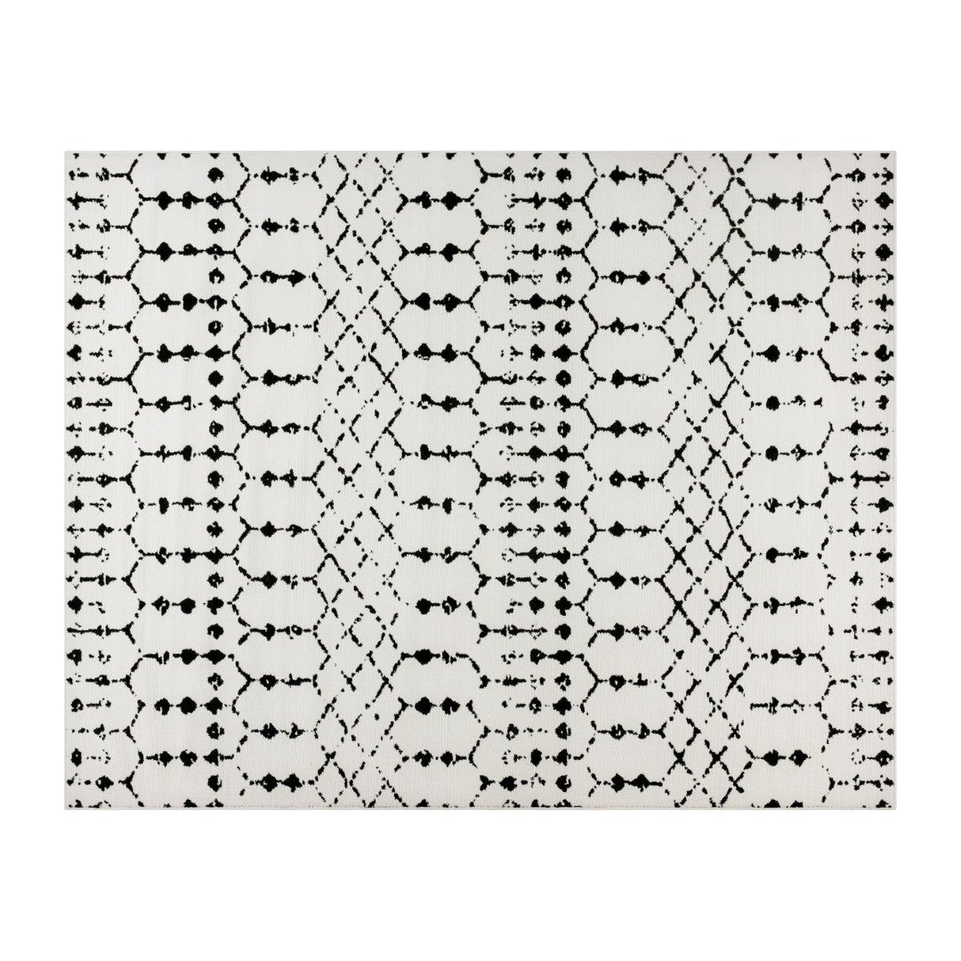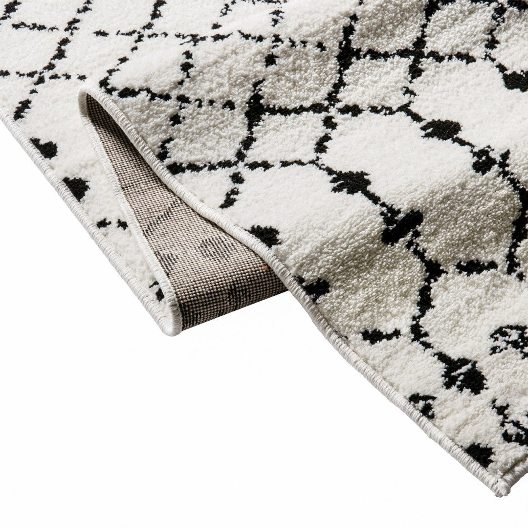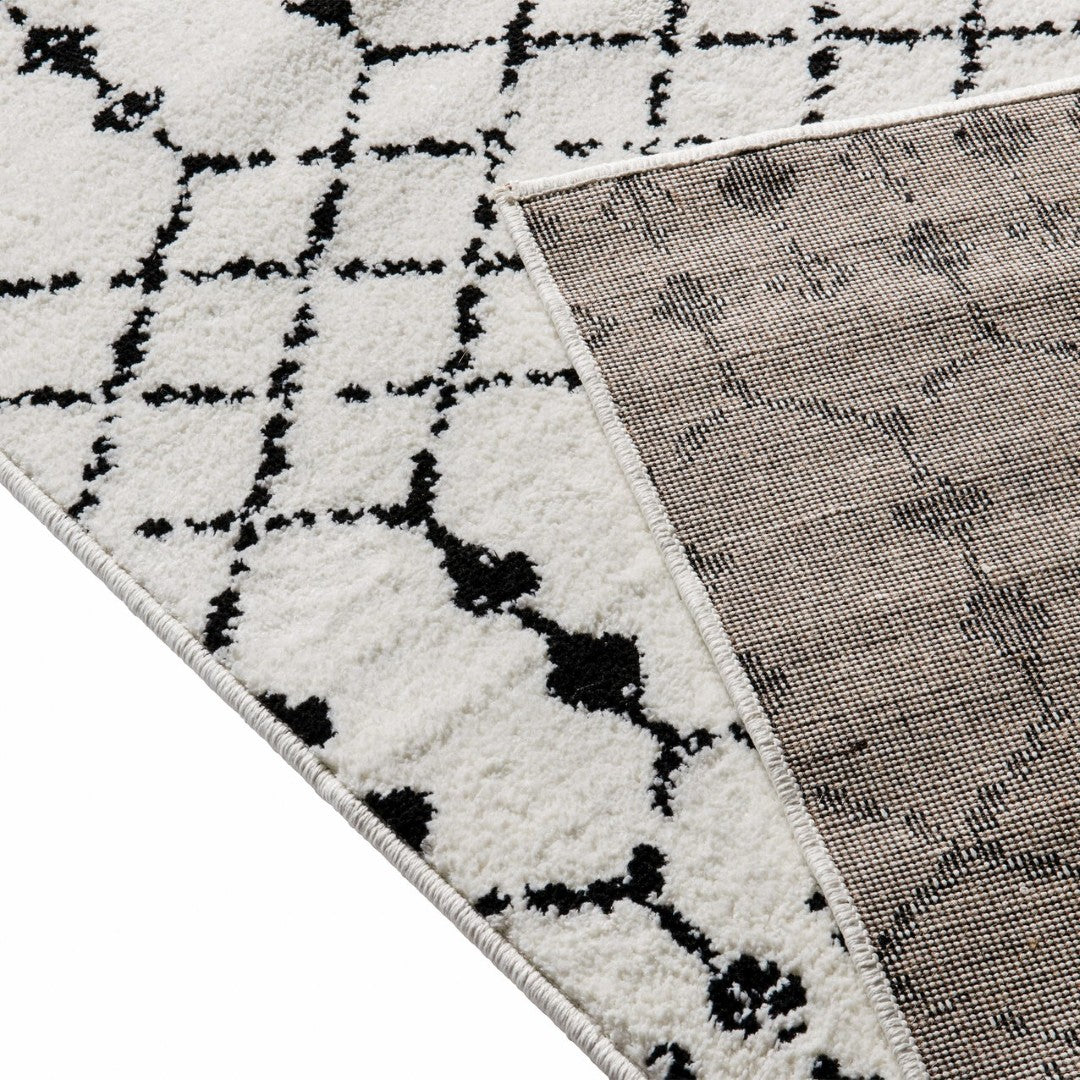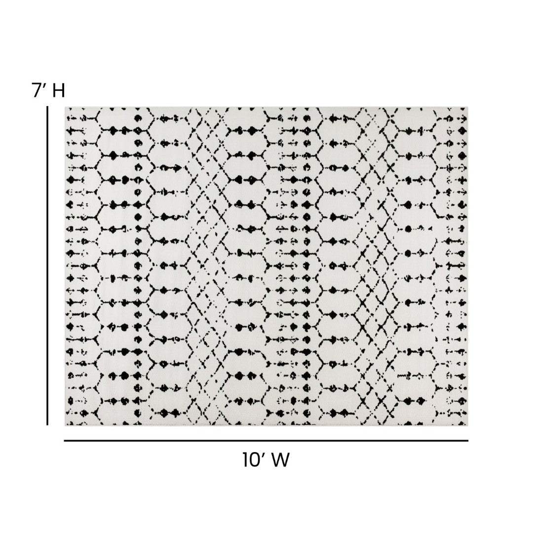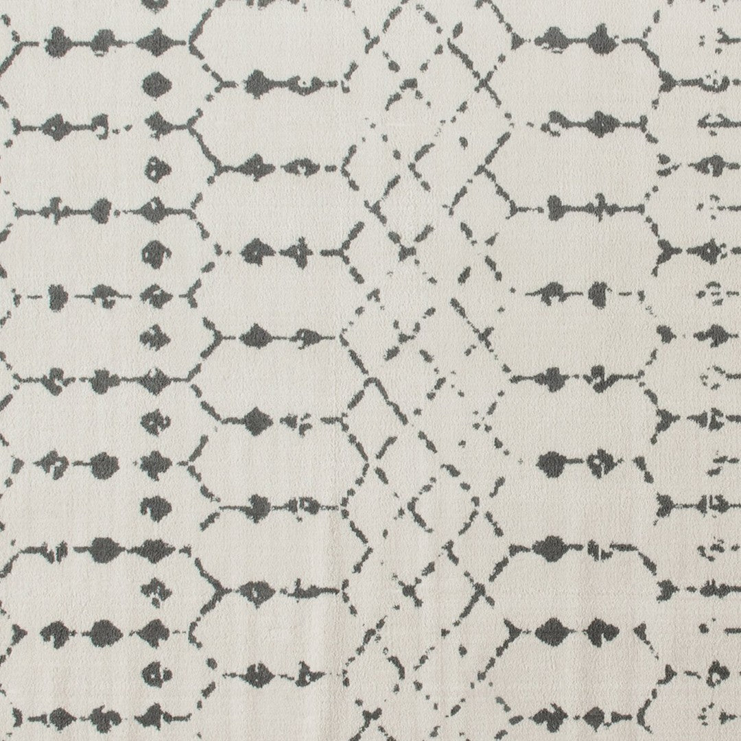 - Low-pile geometric bohemian pattern in ivory and gray for a contemporary, versatile aesthetic