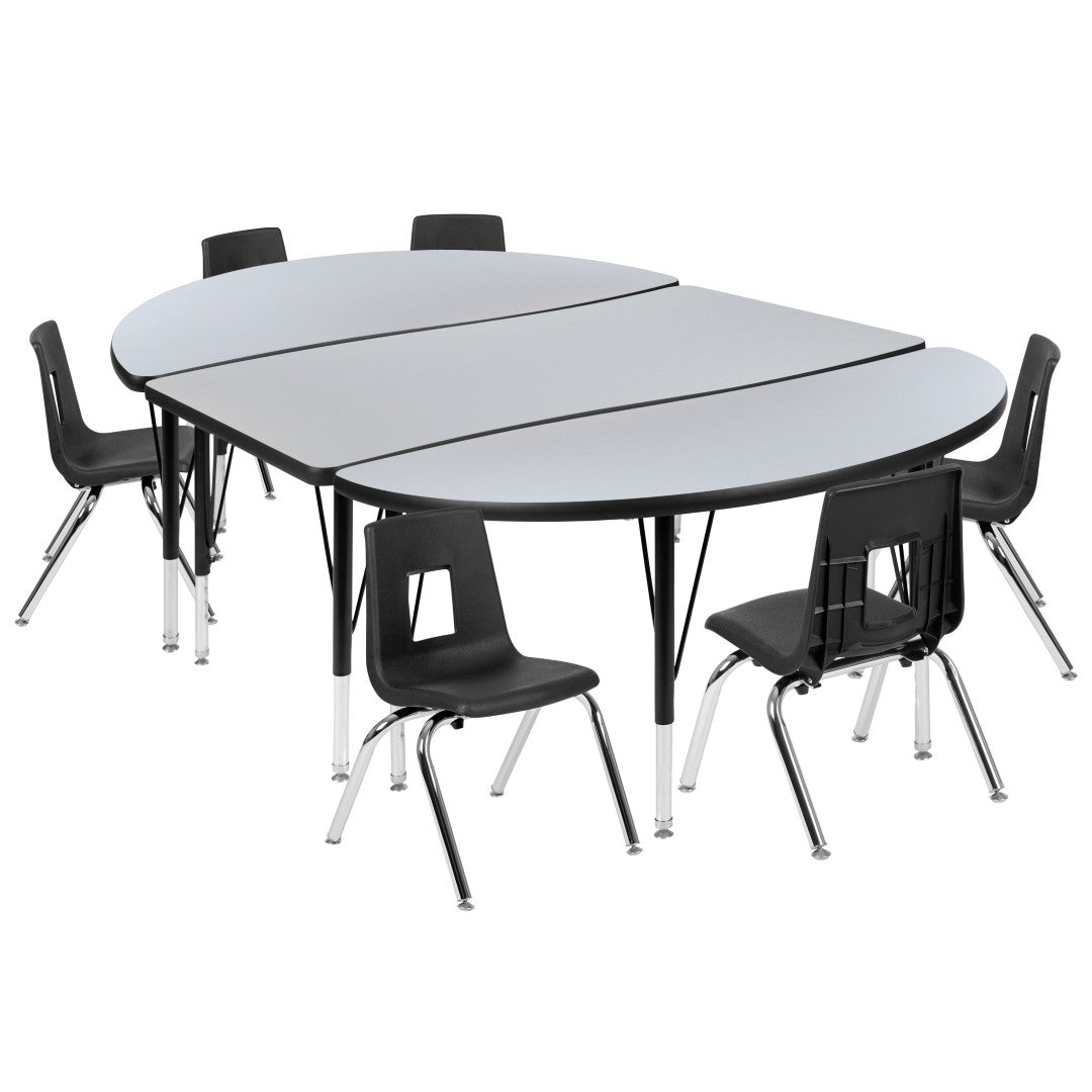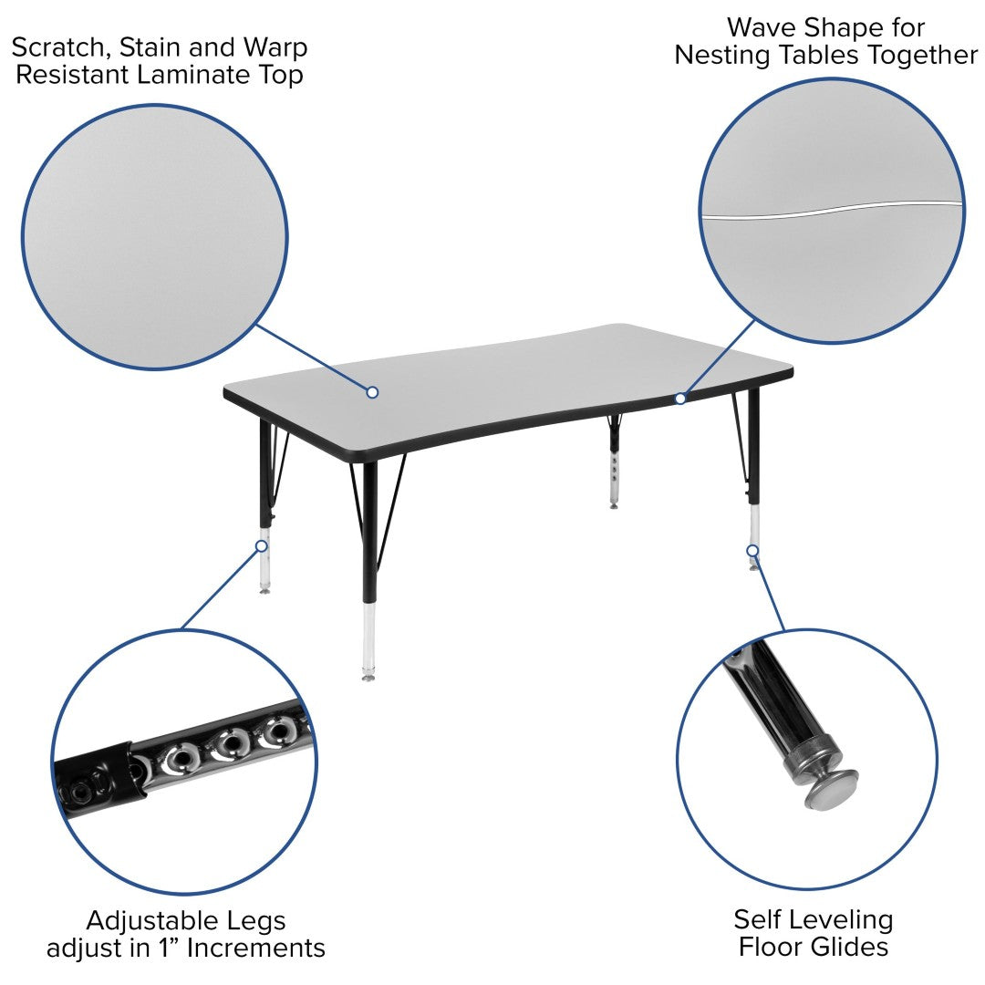 Equip your classroom with a versatile, durable activity table set designed for collaborative learning and years of everyday use. This pre-built 9-piece bundle pairs a 76" flexible wave laminate table with ergonomic 12" student stack chairs to create a comfortable, space-saving solution for preschool and kindergarten environments. Built for adaptability, the set assembles quickly and adjusts to meet changing classroom needs while resisting scratches, stains and warping.