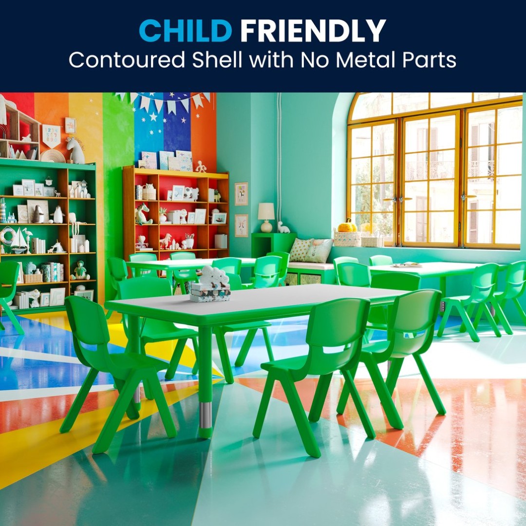 - Chair capacity and comfort: Each plastic chair supports up to 154 lb static load; contoured seat and back promote proper posture for preschool-aged children.