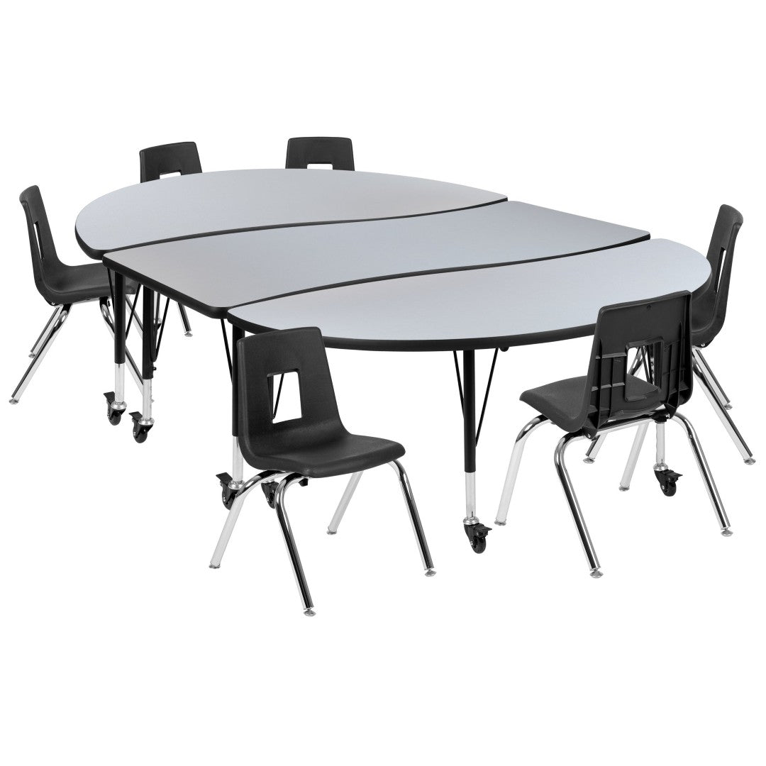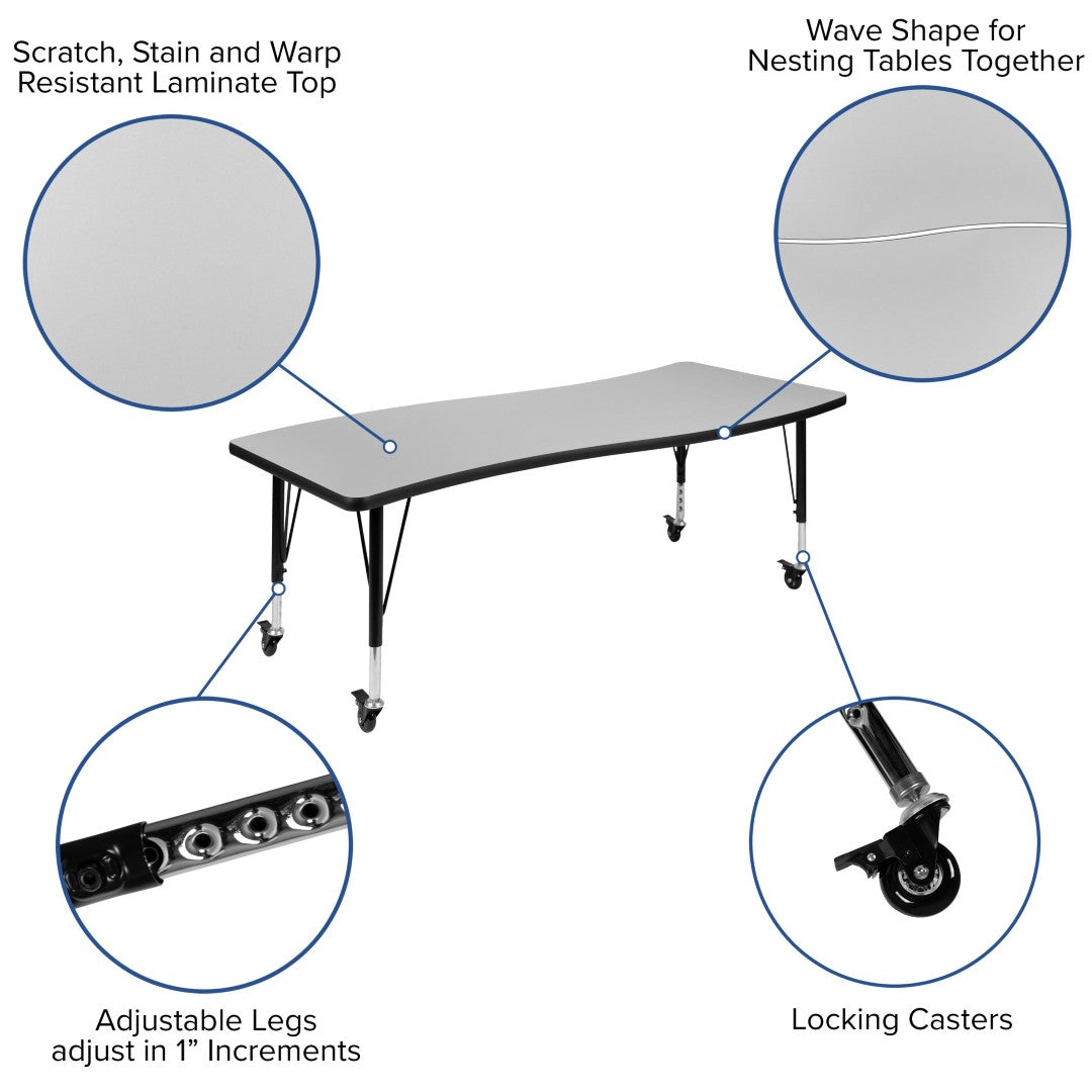 Create versatile learning spaces that adapt to any activity with this durable, mobile wave table set and matching student chairs. Designed for group work, centers, and flexible classroom layouts, the set combines sturdy construction with ergonomic comfort so teachers can rearrange seating quickly and students can focus on collaboration and learning.