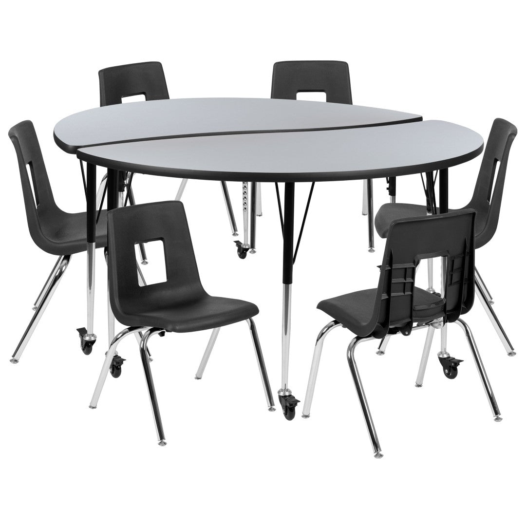 Create a flexible, durable learning space that adapts to changing classroom needs with this ready-to-use activity table and chair bundle. Designed for collaborative grouping and frequent reconfiguration, the set combines a robust, easy-care tabletop with ergonomic stack chairs and mobile, height-adjustable legs so teachers can focus on instruction instead of furniture logistics.