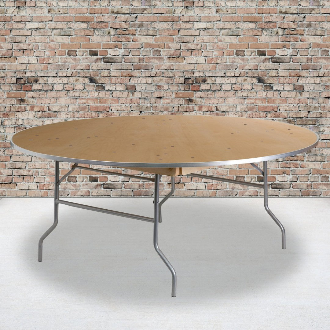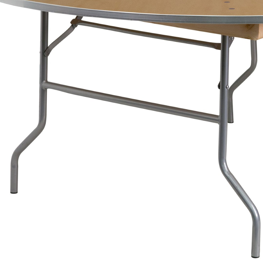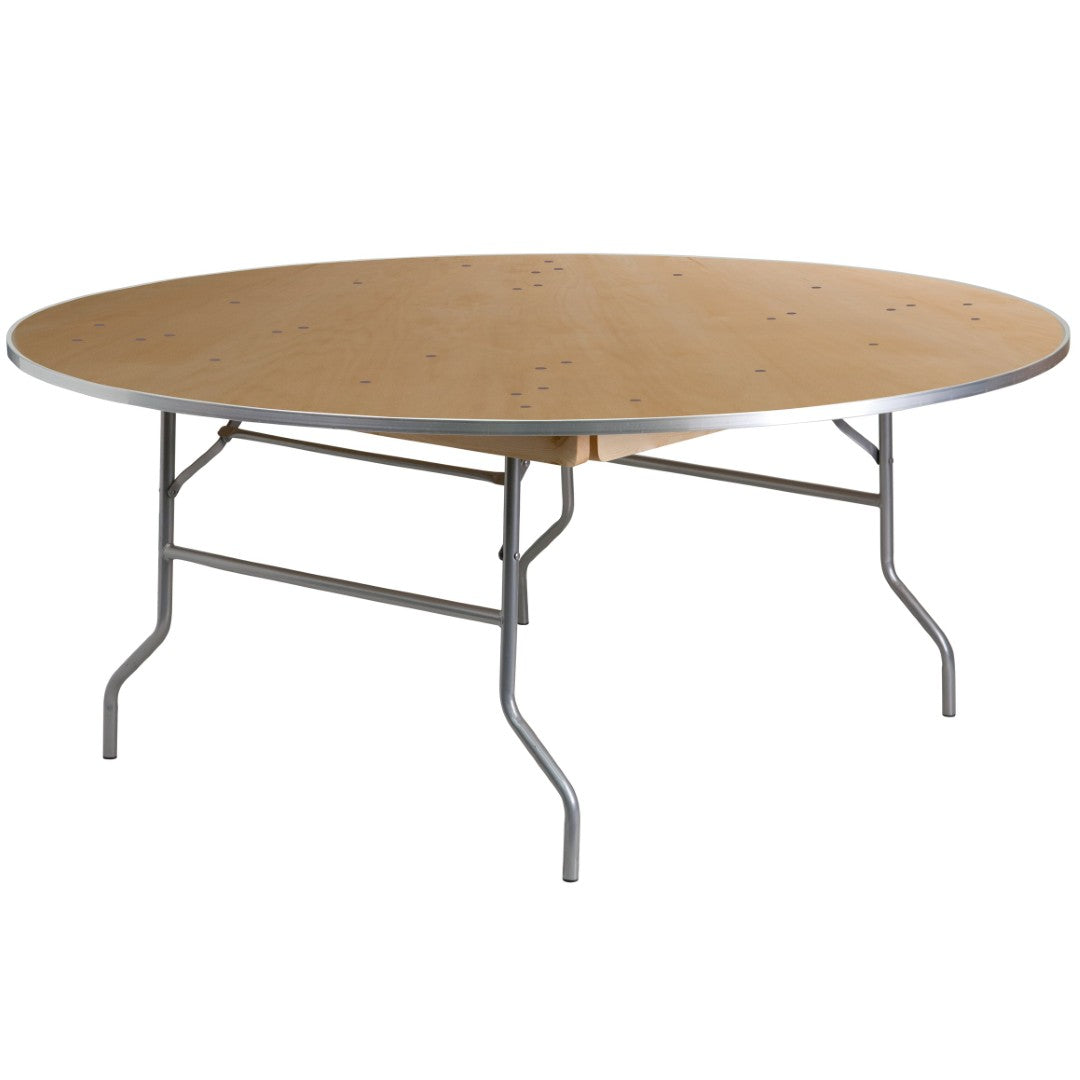 This heavy-duty 6-foot round folding banquet table combines commercial-grade construction with a refined birchwood finish to deliver reliable performance for events, rentals, and high-traffic venues. Built to withstand frequent use and stacking, it offers a stable, attractive surface for banquets, receptions, trade shows, and institutional settings while remaining easy to transport and store.