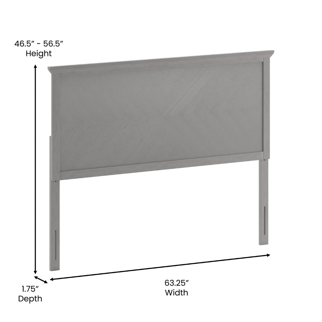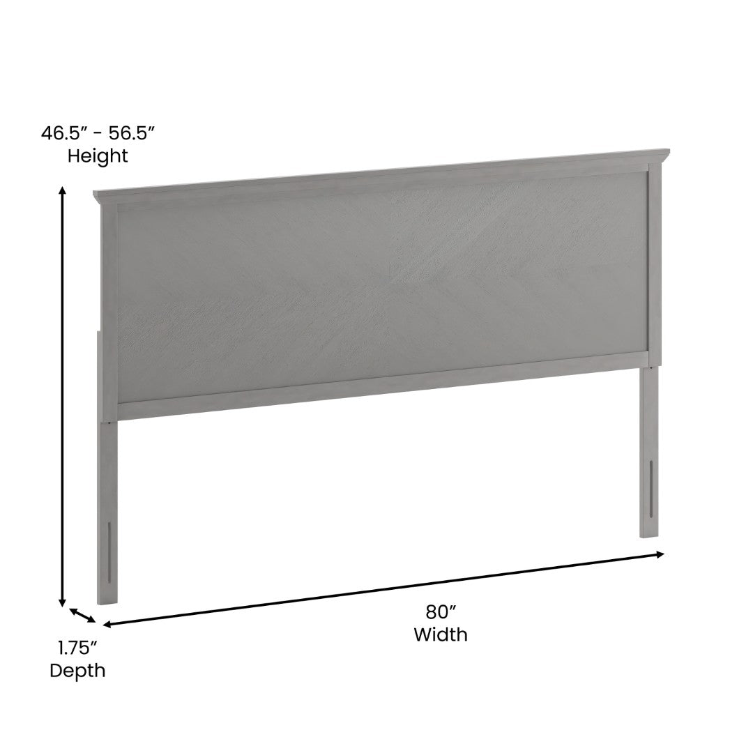 Give your bedroom an instant style upgrade with this modern herringbone wooden headboard. Its clean lines and gray wash finish create a calm, contemporary focal point while the solid rubberwood core and MDF veneer provide dependable strength. Designed for universal compatibility and easy assembly, this headboard adds stability, protects walls from abrasion, and offers adjustable height to match your preferred mattress and frame setup.