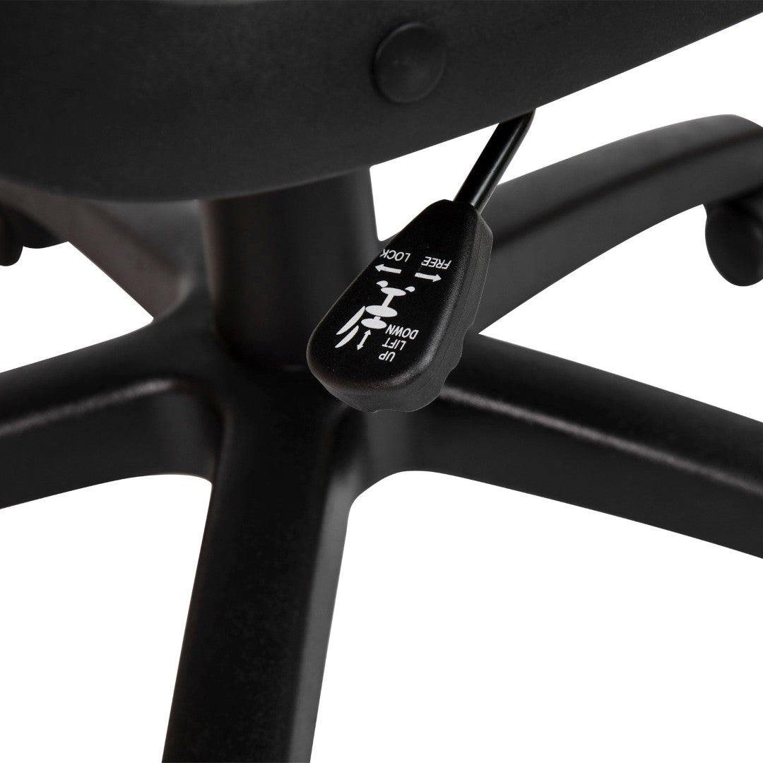 - Tilt Tension Adjustment Knob adjusts the chair's backward tilt resistance