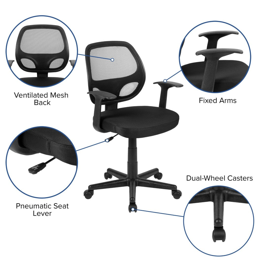 Stay cool and comfortable through long work or study sessions with this mid-back ergonomic task chair. Designed for small spaces without sacrificing support, its breathable mesh back and padded seat deliver all-day comfort while the compact footprint and smooth mobility make it ideal for dorms, home offices, and professional workspaces.