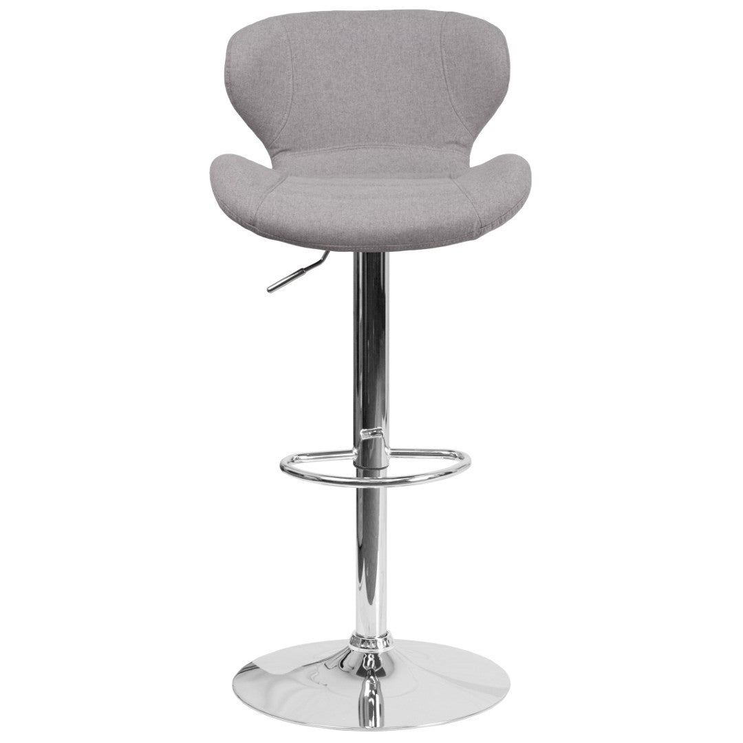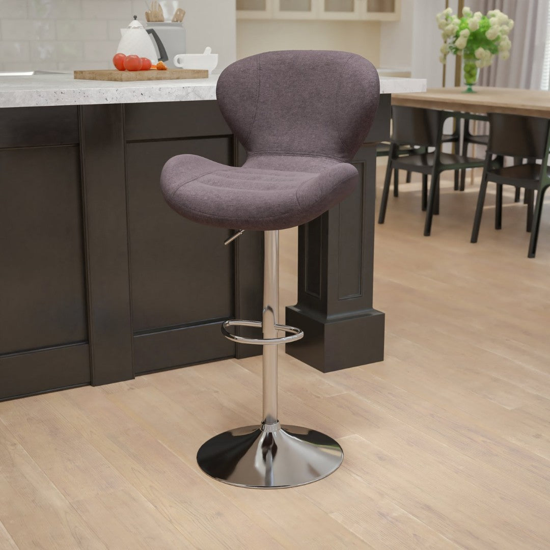 Bring contemporary flair and versatile function to your home bar or kitchen with this charcoal fabric barstool. Its curved mid-back and tailored stitch detailing deliver a modern, sculpted silhouette, while the chrome pedestal and footrest add polished durability. Smooth gas-lift height adjustment and a 360° swivel create adaptable comfort from counter to bar height, making this stool an elegant, practical addition to everyday living and entertaining spaces.