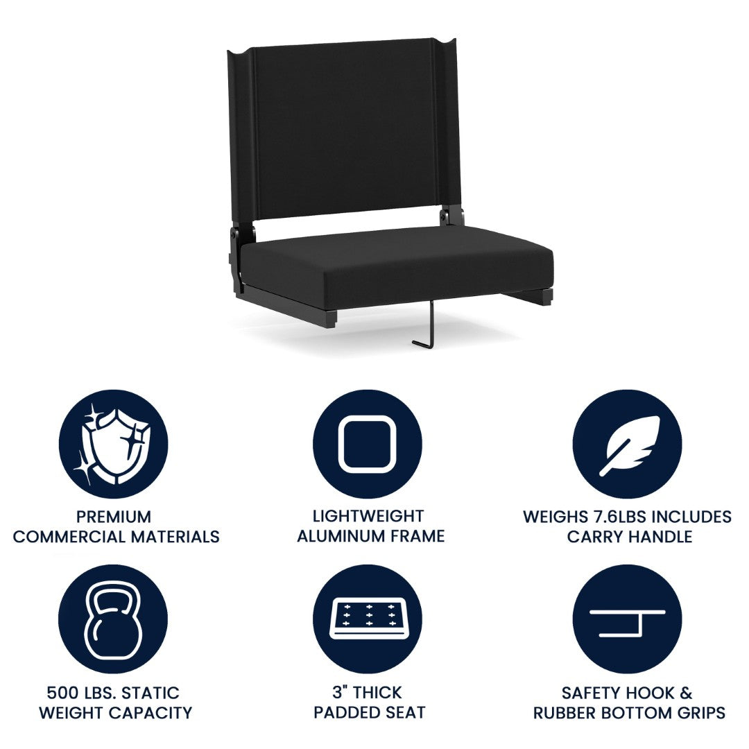 - Folding Stadium Chair with Carrying Handle Grip for all indoor and outdoor events