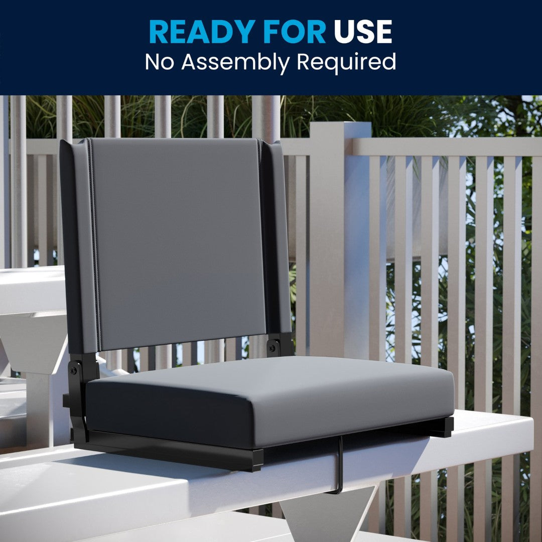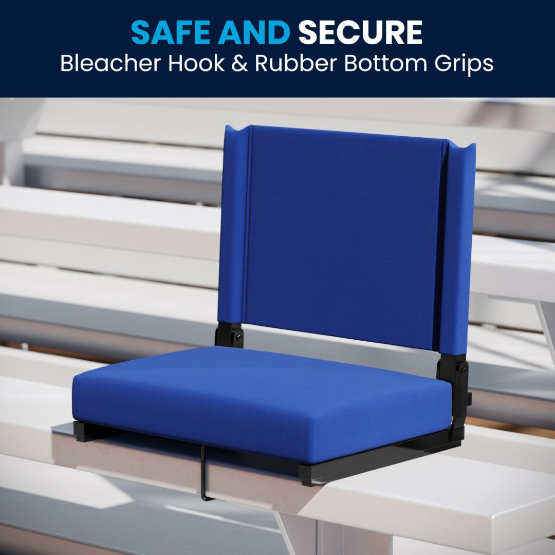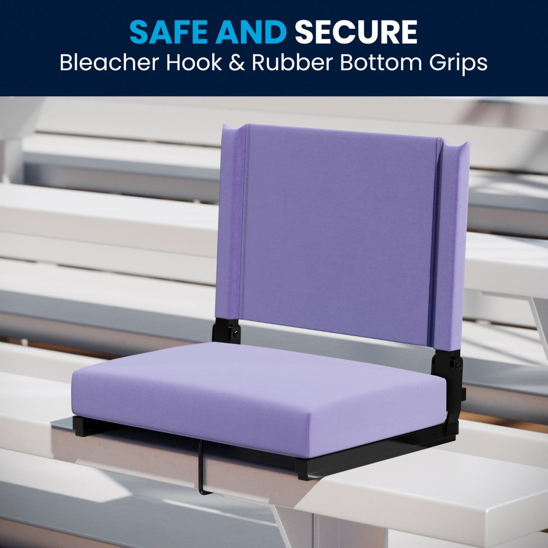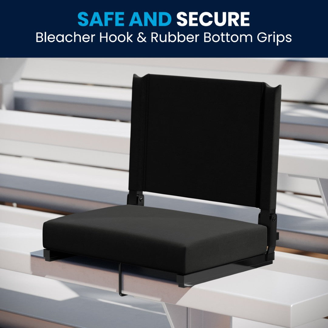 - Stability features: Bleacher hook and rubber grips help secure the chair on bench seating and prevent slipping.