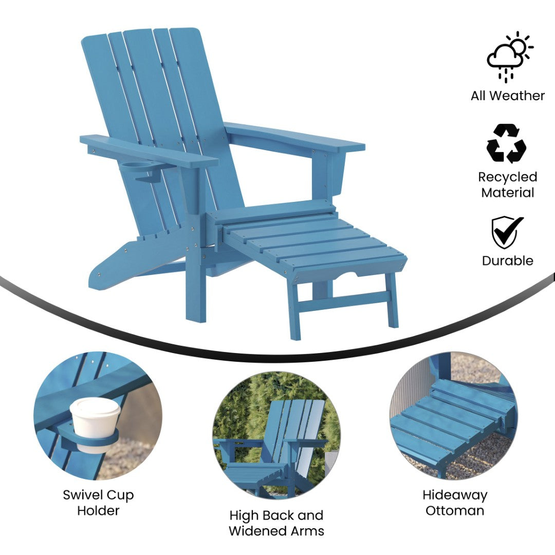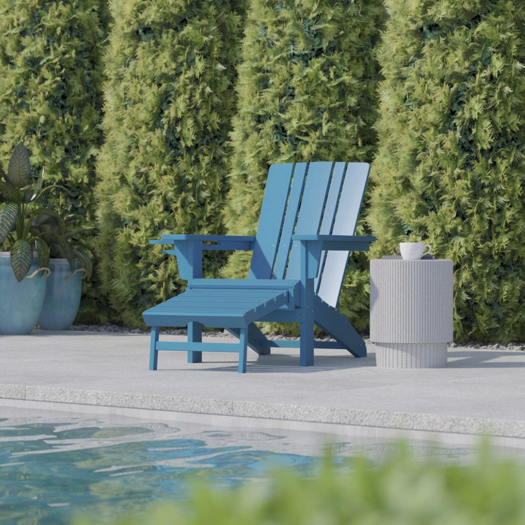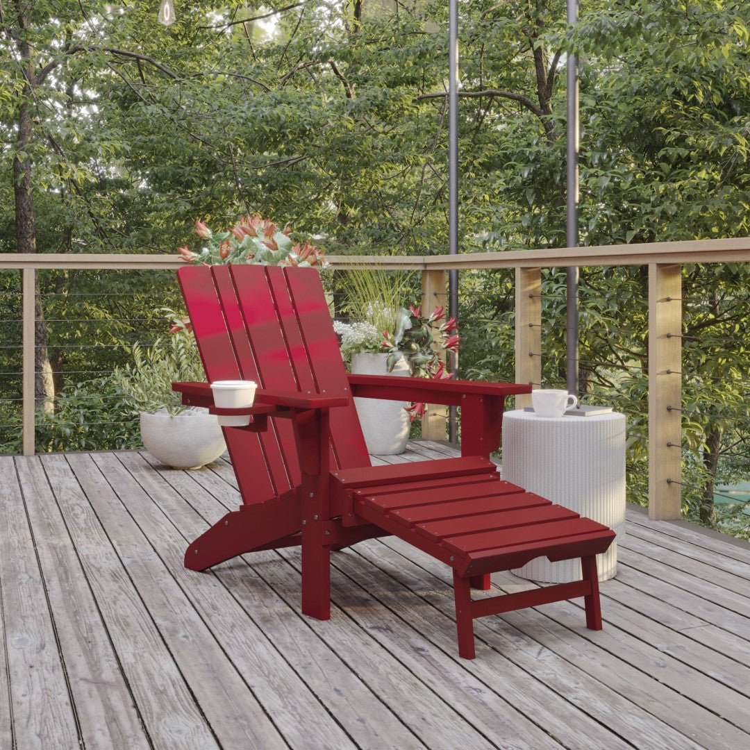 - Commercial Adirondack Chair with Pull-Out Ottoman and Cupholder