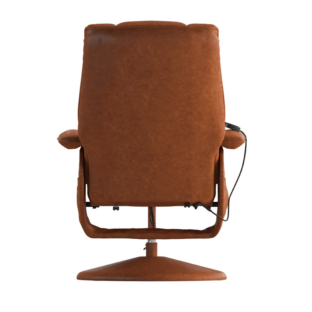 Relax and recover in style with this versatile massaging recliner and matching ottoman. Thoughtfully designed for home or office use, the set combines targeted therapeutic massage, gentle heat, and adjustable reclining for a personalized comfort experience. The supple Black LeatherSoft upholstery and wrapped base create a polished look that resists spills and cleans easily, while the compact footprint and 360° swivel seat make it convenient for multitasking without interrupting your relaxation.