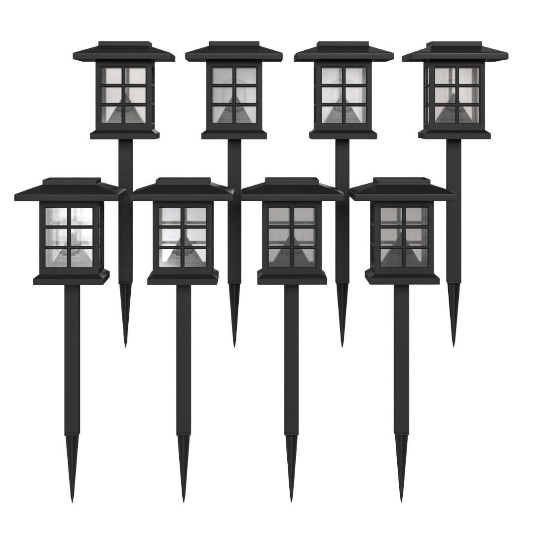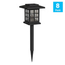 Bring instant charm and dependable illumination to your outdoor spaces with this set of 8 black lantern-style solar lights. Designed for easy, tool-free installation and low maintenance, these weather-resistant lights use renewable solar energy to automatically brighten pathways, flower beds, driveways, and yards at dusk — no wiring or electricity bills required. Their classic lantern silhouette and bright white LEDs deliver both safety and curb appeal, making them a practical, attractive addition to any landscape.