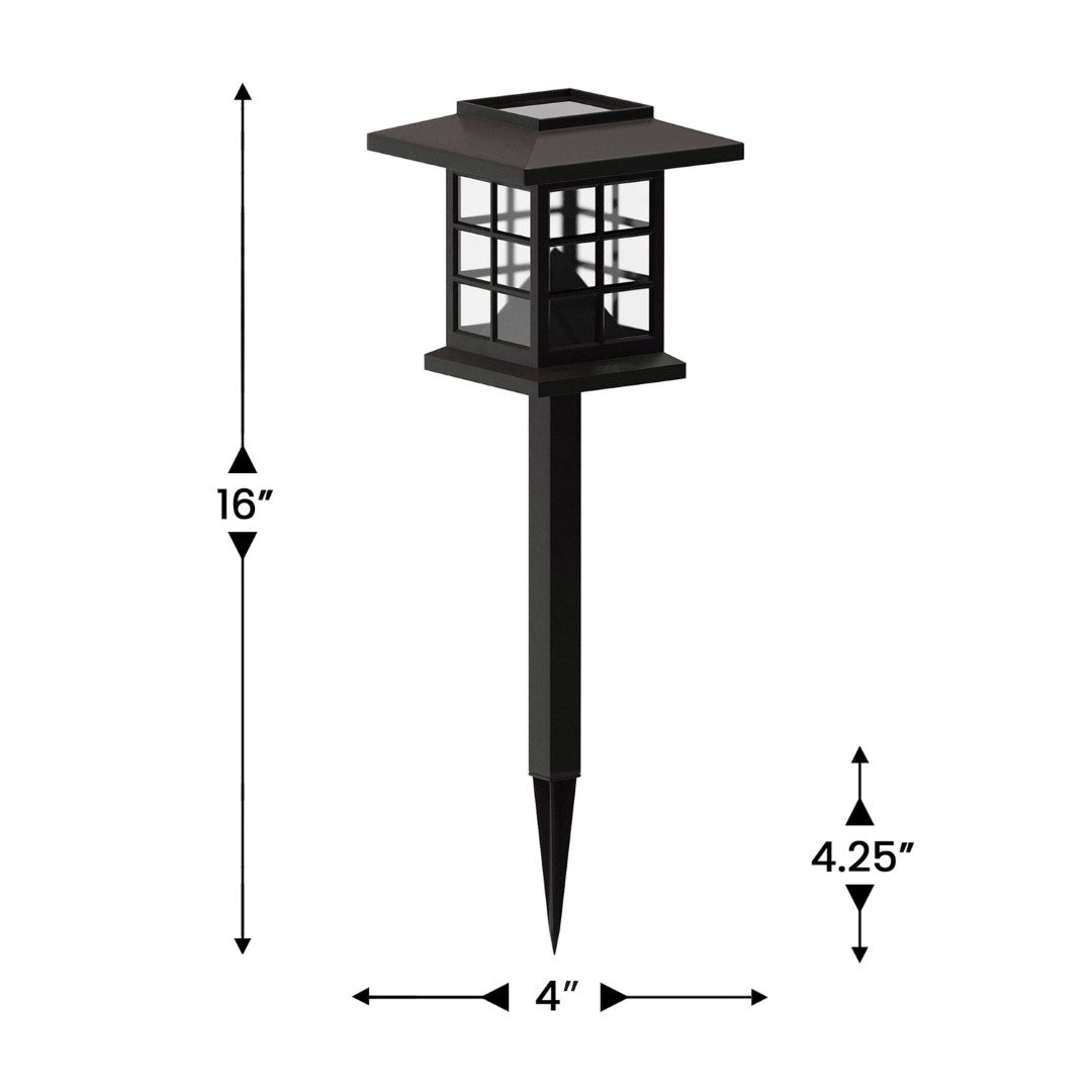 - Dimensions: 4"W x 4"D x 16"H (each) — compact lantern heads with a 16" overall height for balanced pathway lighting and garden placement.