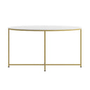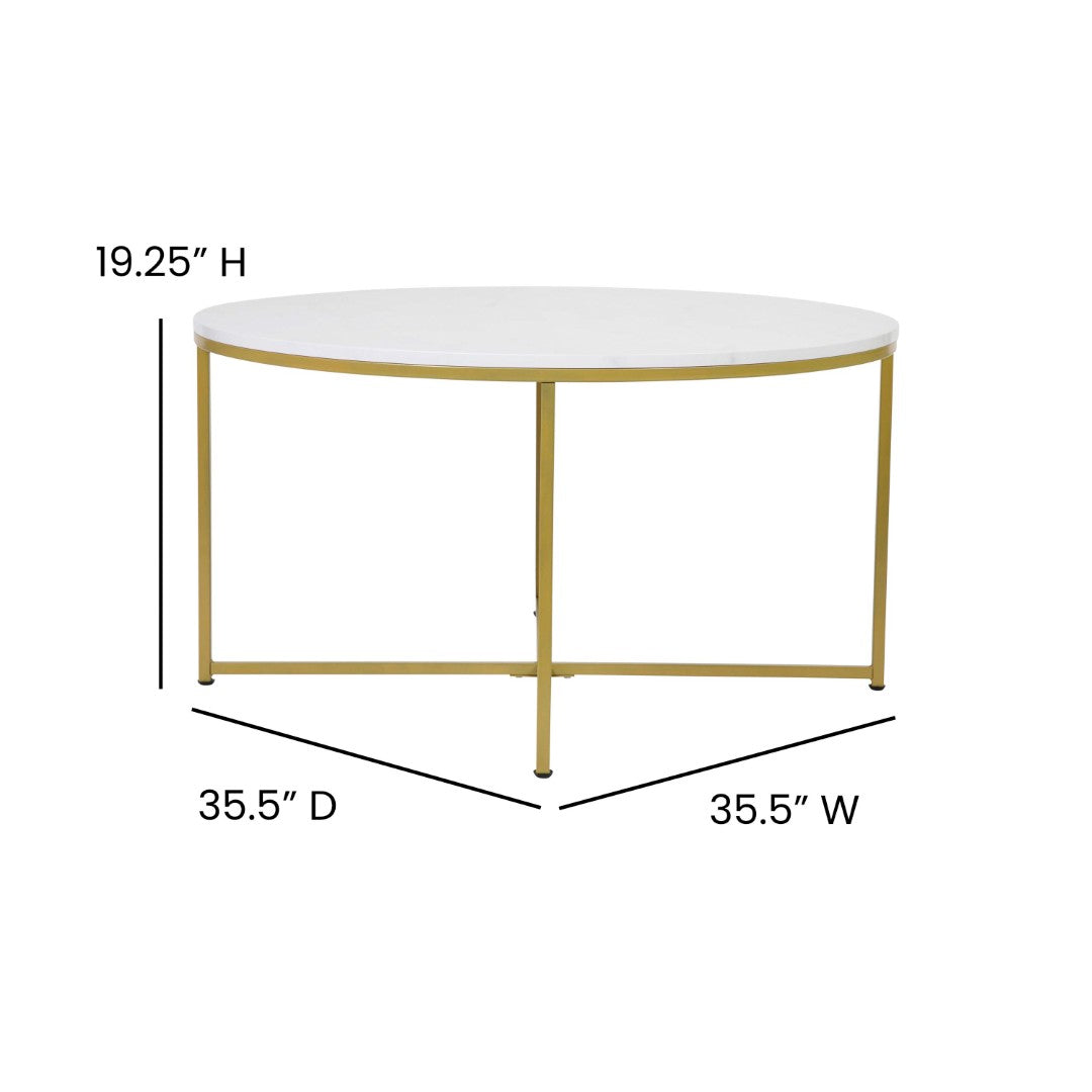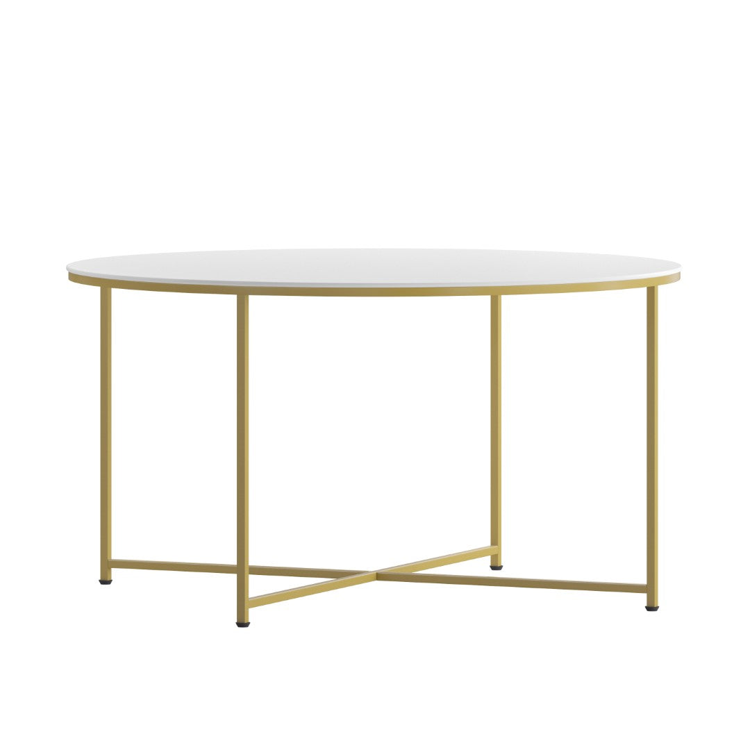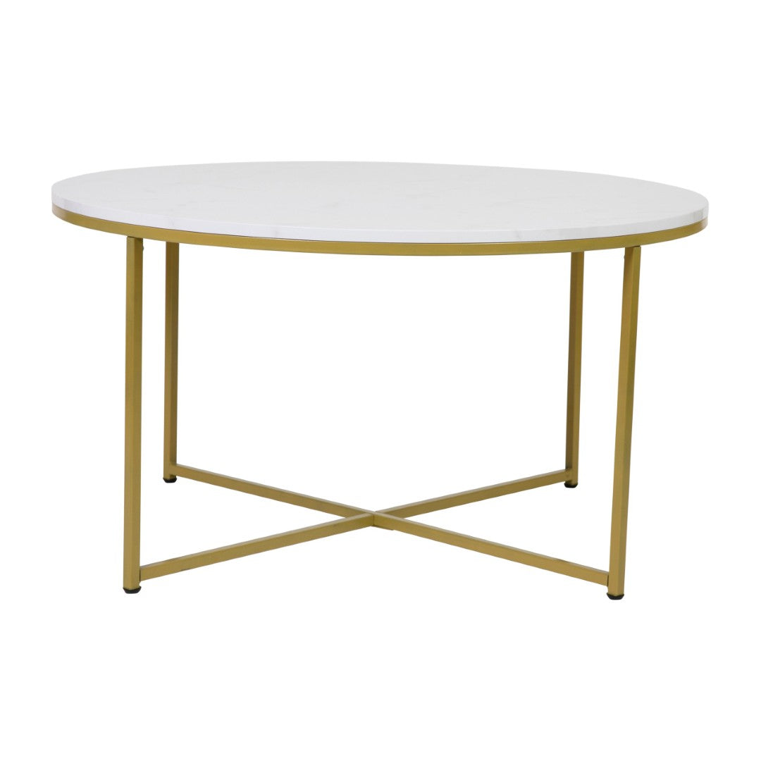 Bring modern elegance and practical durability to your living space with this round mixed-media coffee table. Its crisp white laminate top and crisscross brushed gold metal base create a refined focal point that suits contemporary, transitional, and minimalist interiors. Designed for everyday use, the table combines a stylish silhouette with thoughtful construction details—durable surfaces, protective floor glides, and easy assembly—so it looks great and performs reliably for years.