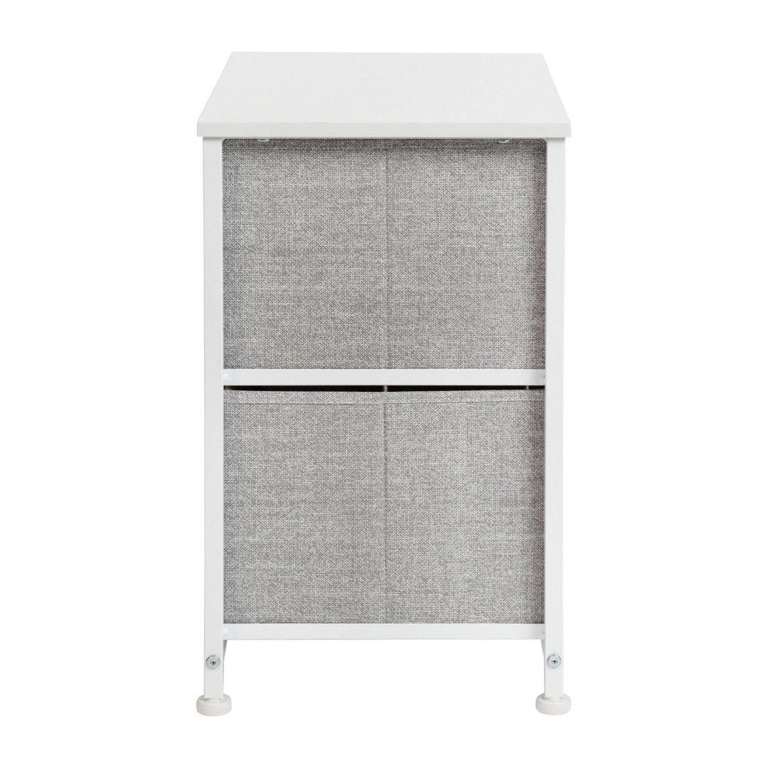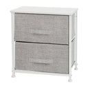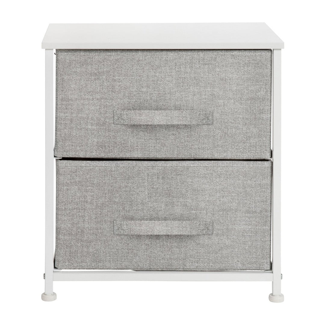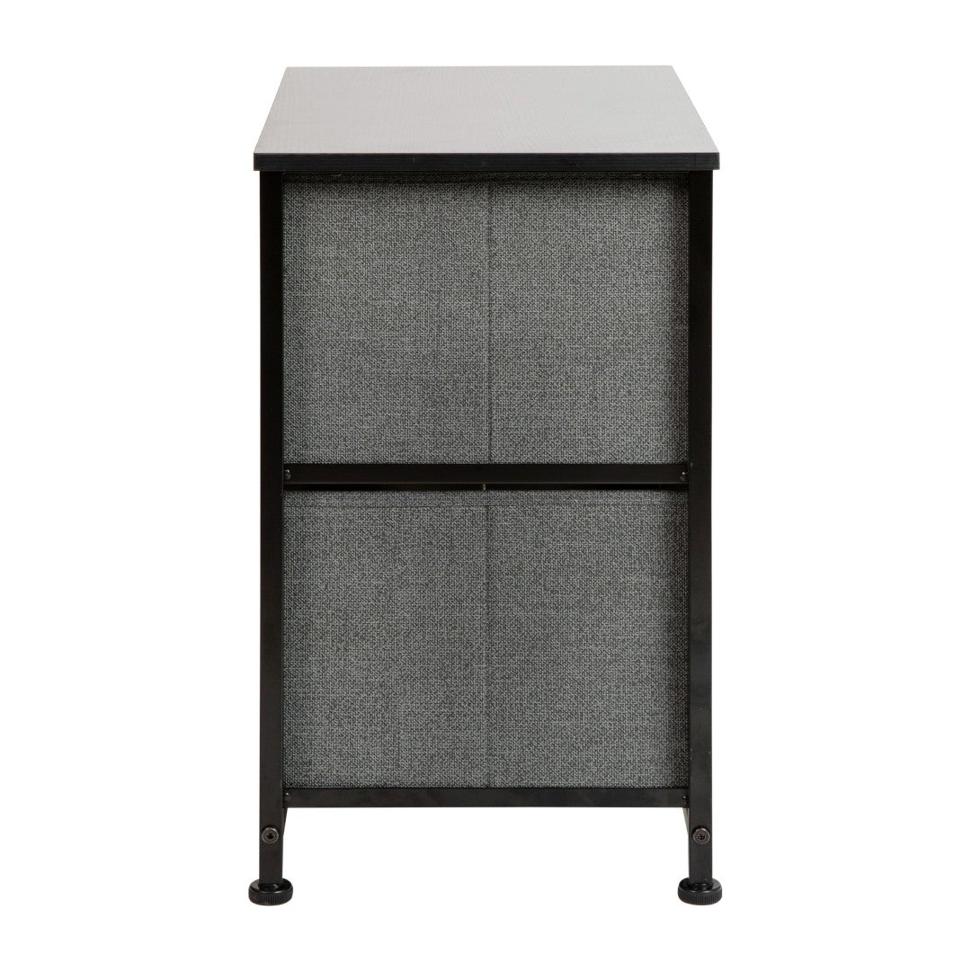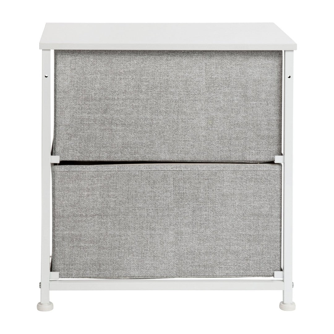 Bring smart, compact organization to any room with this stylish 2-drawer storage table. Combining a sturdy cast-iron frame, a durable engineered wood top, and easy-pull dark gray fabric drawers, it offers a versatile nightstand or small-storage solution that looks good in bedrooms, closets, living rooms, or play areas. Simple to assemble and easy to maintain, it maximizes storage without taking up a lot of floor space.