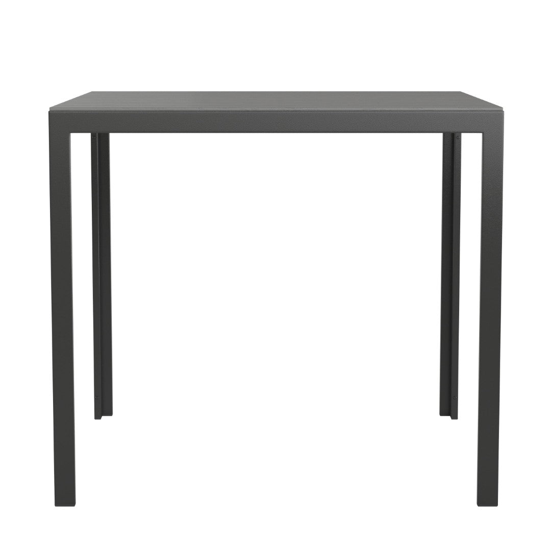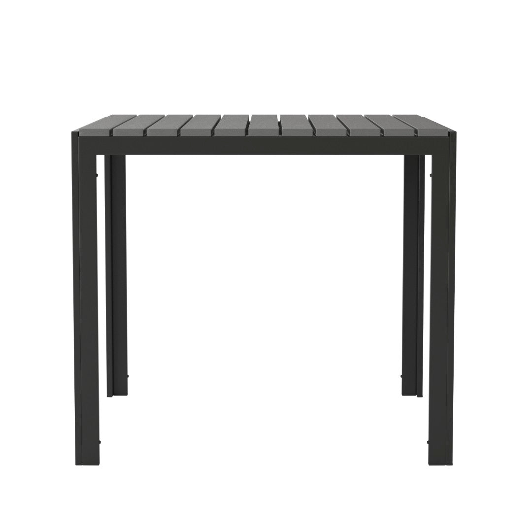 Create a welcoming indoor or outdoor dining spot with this commercial‑grade square patio table designed for durability, low maintenance, and versatile use. Built with a sturdy steel frame and a black poly resin slatted top, it pairs easily with a variety of seating styles and is ideal for bistros, poolside areas, hotels, restaurants, or home patios. Quick to assemble and simple to clean, this table combines professional performance with a clean, modern look.