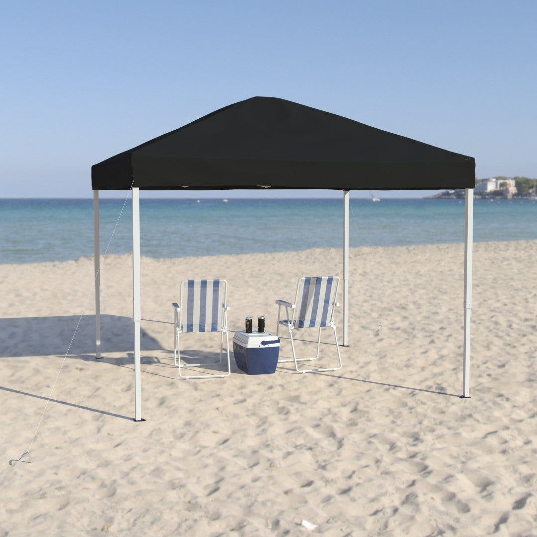 Keep your outdoor events comfortable and protected with this sleek black 10' x 10' pop-up canopy—designed for fast setup, reliable weather resistance, and reliable season-to-season use. Lightweight and portable, it’s ideal for tailgates, yard parties, camping, sports events, vendor booths, and any activity where instant shade and shelter are needed.
