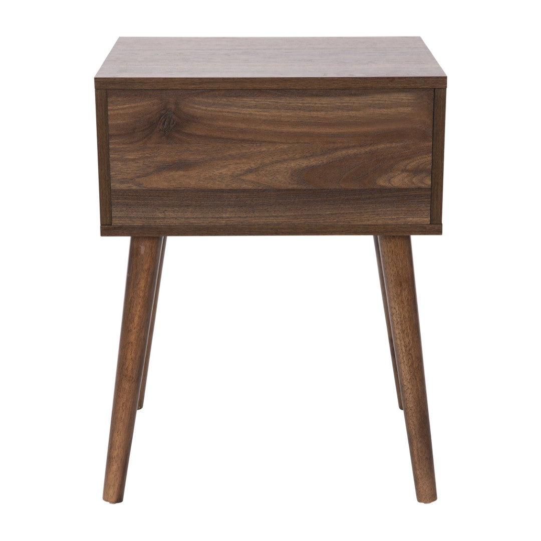 Refresh your space with a timeless mid-century modern accent that combines form and function. This compact nightstand/end table brings clean lines, tapered wooden legs, and a warm dark walnut finish to any bedroom, living room, entryway, or home office — while offering practical storage and lasting durability. The soft-close drawer keeps bedside essentials quiet and accessible, and the engineered wood construction supports everyday use with easy maintenance.