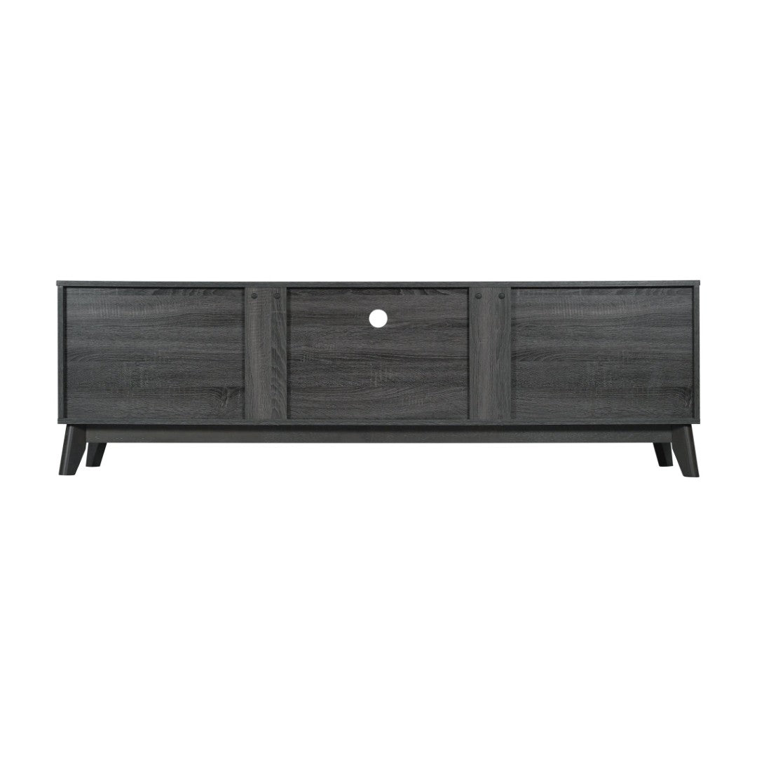 Give your living room an instant style upgrade with this mid-century modern TV stand that blends retro charm with everyday functionality. Designed to support large televisions while keeping media clutter out of sight, this 60-inch media center combines open shelving for components and décor with dual soft-close cabinets for discreet storage. Durable construction, thoughtful cable management, and easy assembly make it a practical focal point for busy homes.