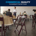 Give your space classic wood-look style with commercial-grade durability. These chestnut folding event chairs combine the warmth of traditional wood design with the low maintenance and weather resistance of molded resin, making them ideal for homes, patios, restaurants, hotels, and special events. Lightweight for easy setup and storage yet engineered for heavy-duty use, the set of two delivers comfortable, washable seating that stays looking new with minimal care.