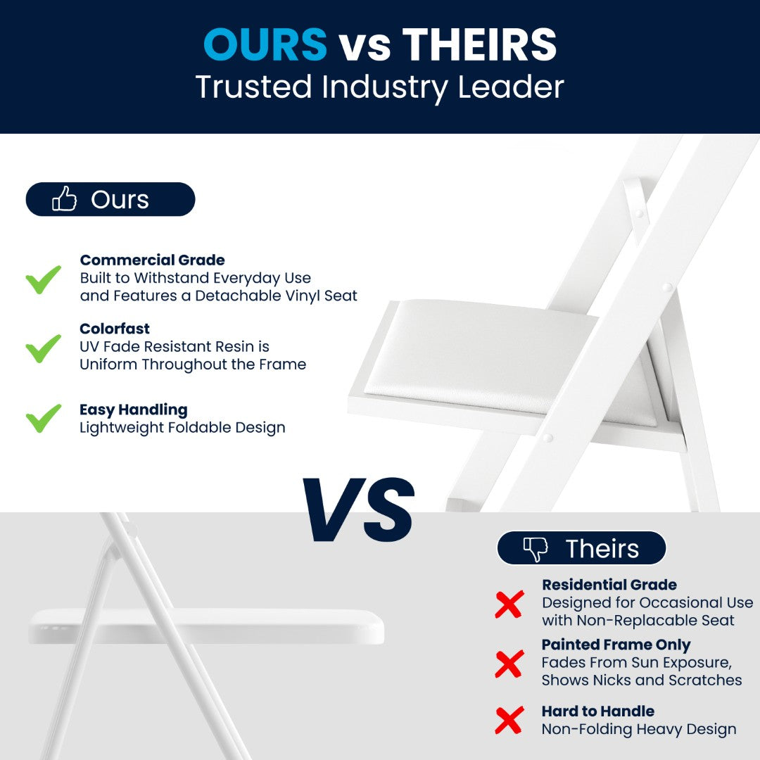 - Vinyl Seats are Washable, Removable, and Replaceable to Keep Chairs Looking Like New