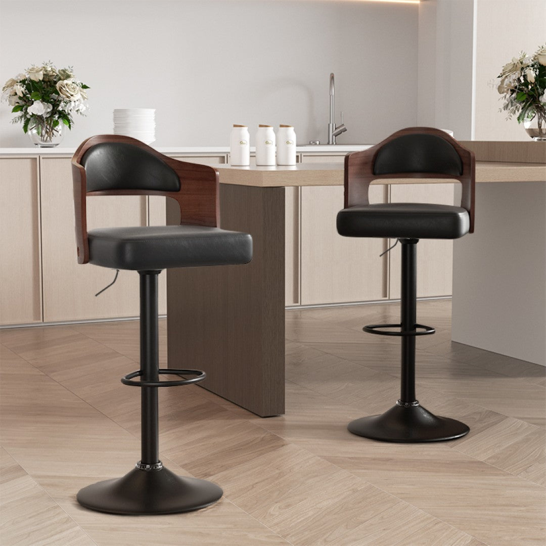 Bring modern comfort and versatile functionality to your kitchen, bar, or dining area with this set of two stylish swivel bar stools. Thoughtfully designed with PU leather upholstery, contoured bentwood backs, and cushioned seats, these stools combine durable construction with ergonomic support for everyday use and entertaining.