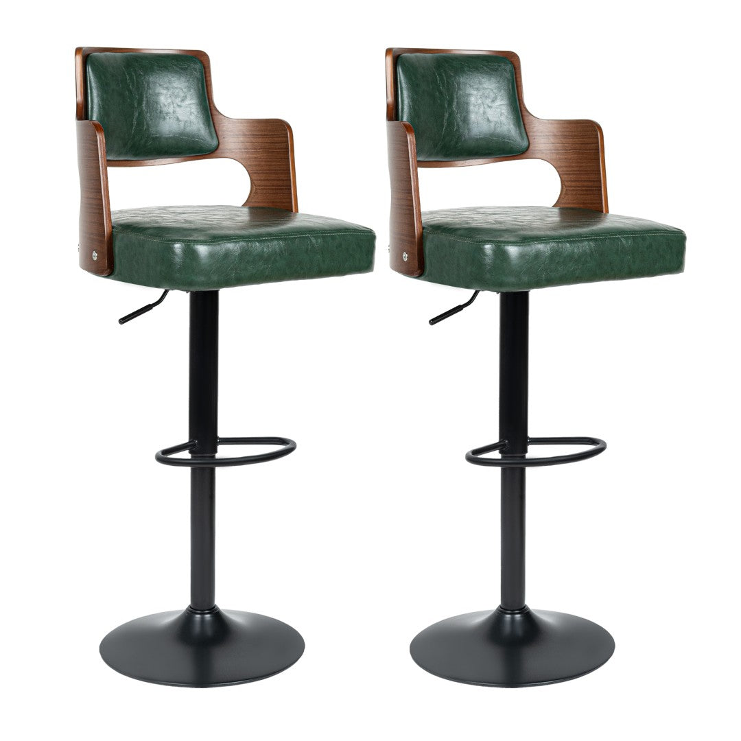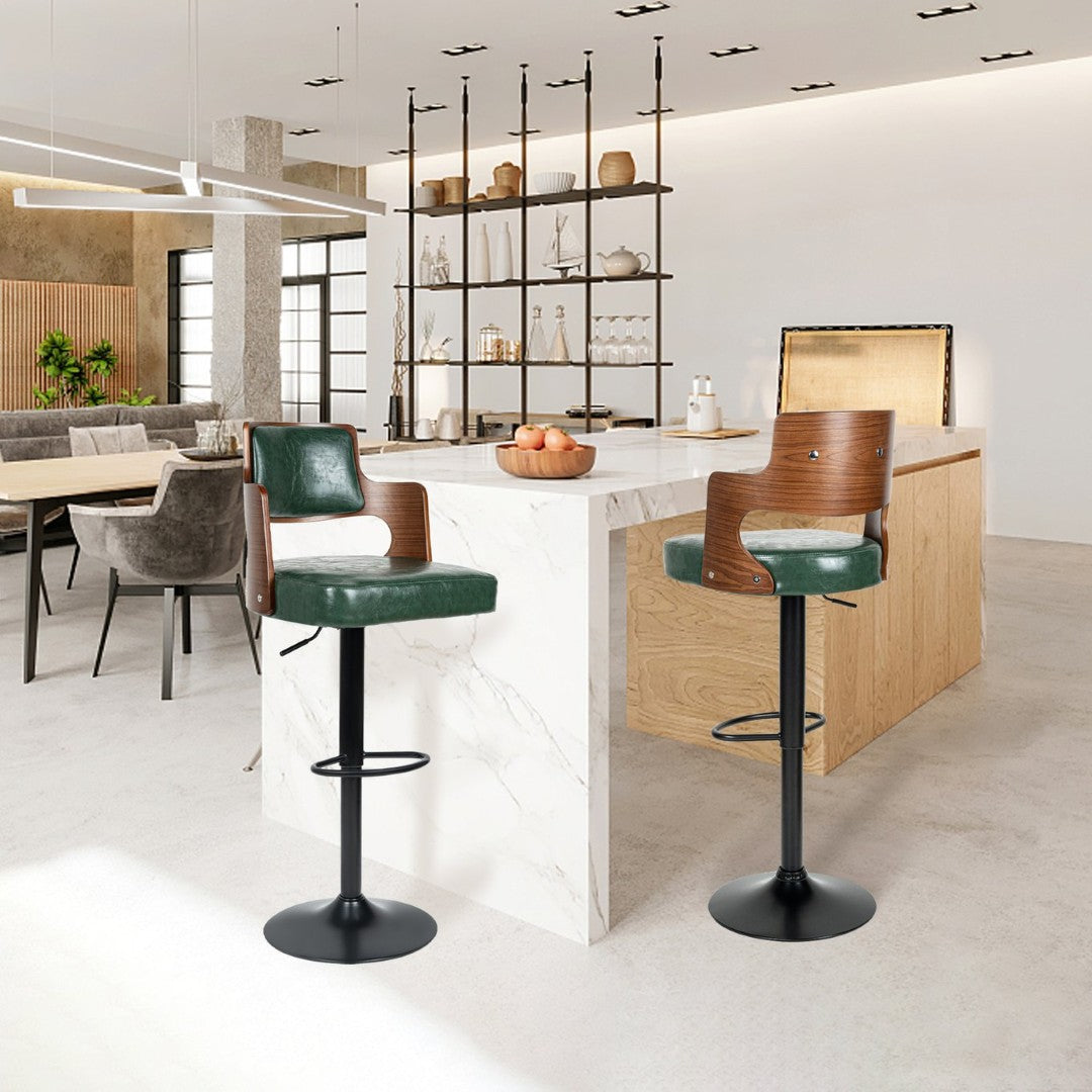 Brighten your kitchen island or bar area with these stylish and comfortable swivel bar stools. Combining modern faux leather upholstery with warm bentwood accents, they provide a polished look and practical performance for daily use—perfect for breakfast nooks, home bars, and commercial settings. Thoughtfully designed for comfort, stability, and easy maintenance, this pair of bar chairs brings both form and function to your space.