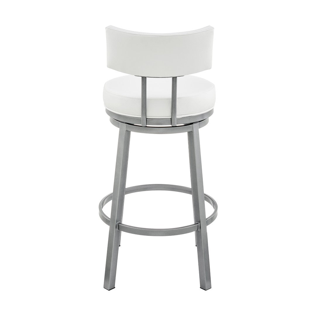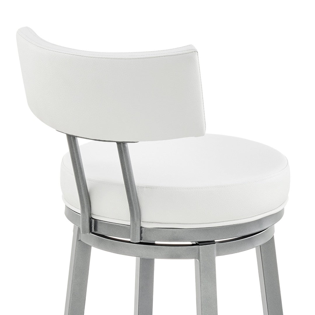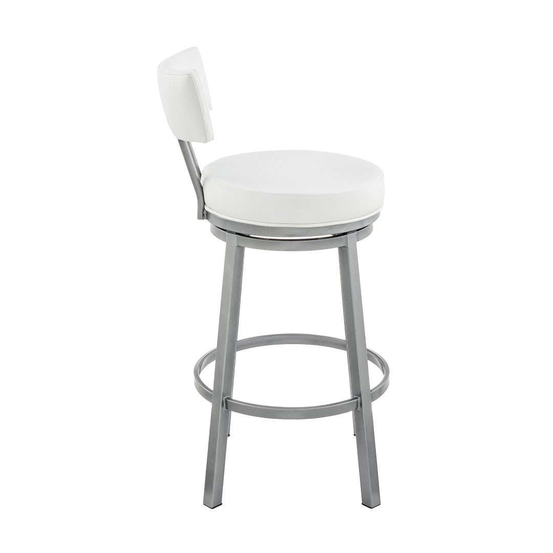 Bring contemporary comfort and effortless mobility to your kitchen, breakfast bar, or home bar with the Sylra Swivel Bar Stool in a cloud finish and white faux leather. Thoughtfully designed for everyday use, this stool combines a full 360° swivel, durable construction, and easy-care upholstery to create a stylish yet practical seating solution that complements modern interiors.