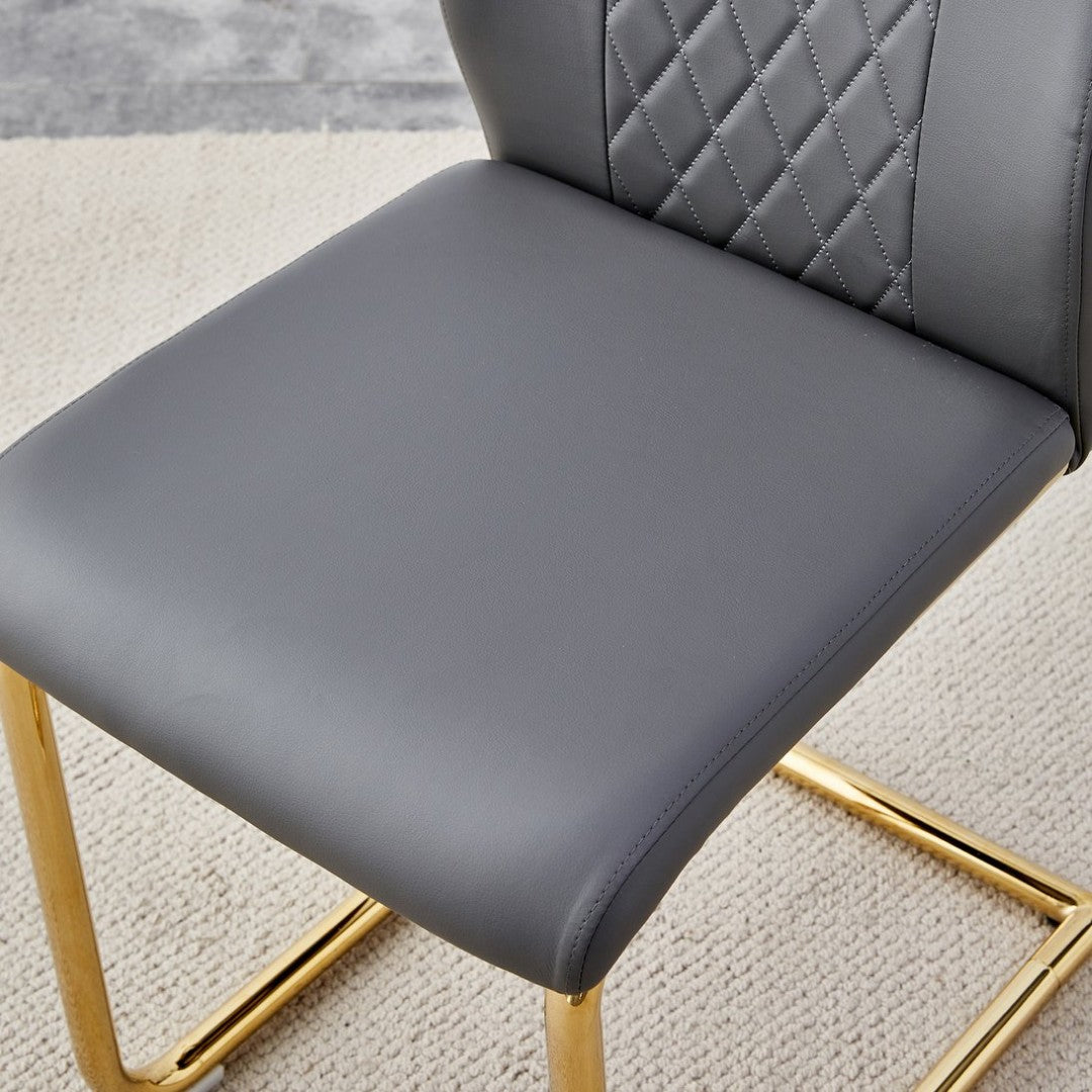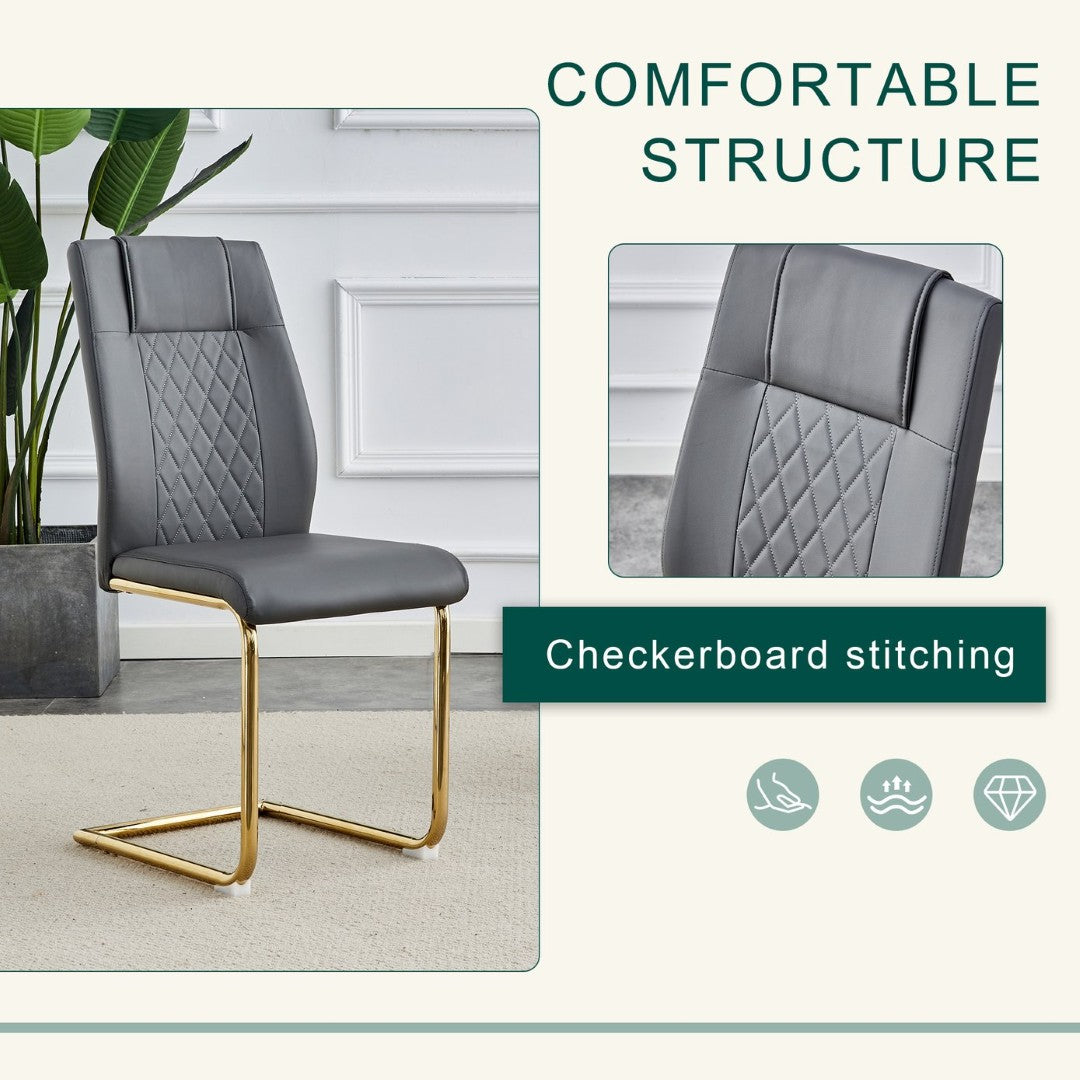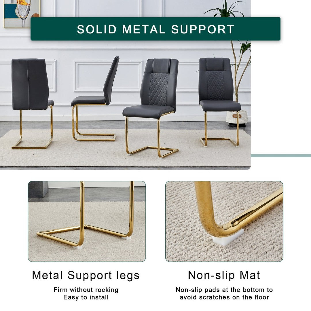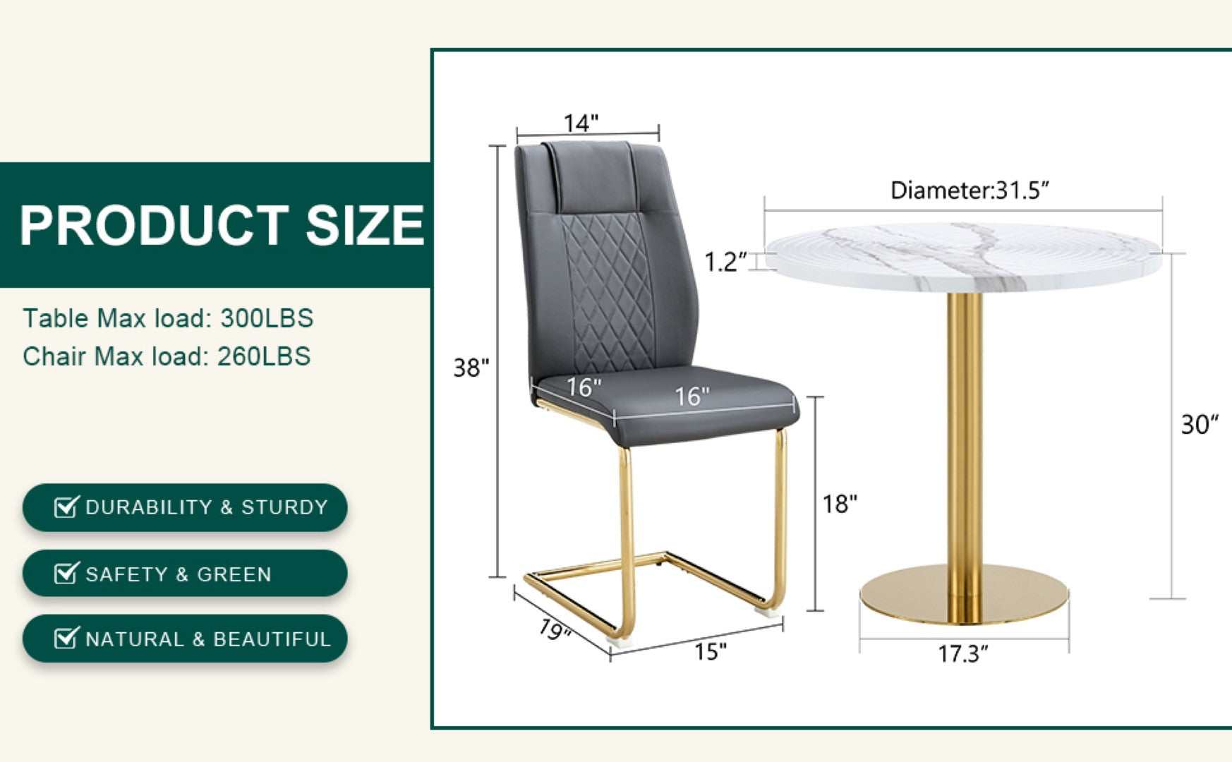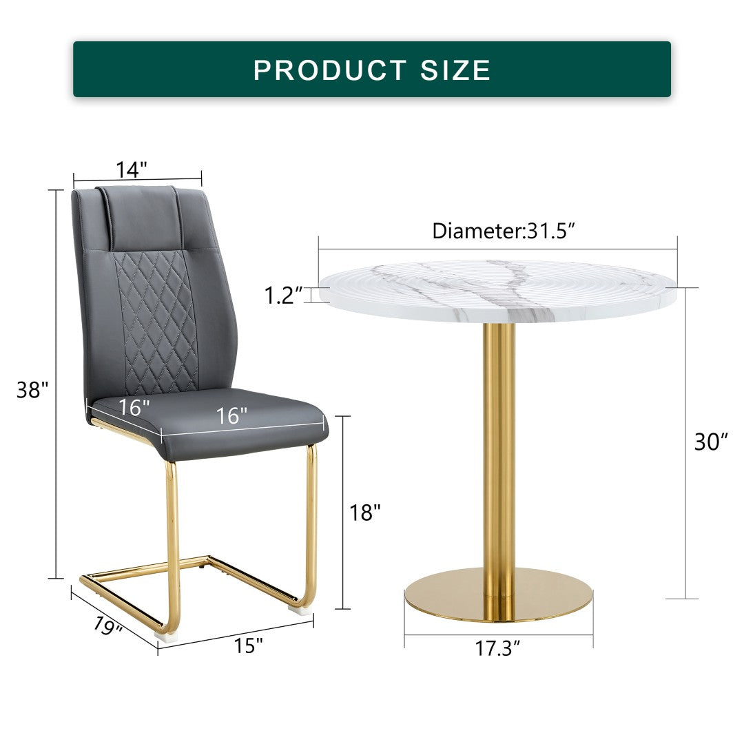 Refresh your dining area with this elegant 5-piece set that blends a white marble-look tabletop with refined gold metal accents and comfortable gray PU chairs. Ideal for small dining rooms, breakfast nooks, or modern apartments, the set combines durable materials and thoughtful design for everyday use and occasional entertaining.
