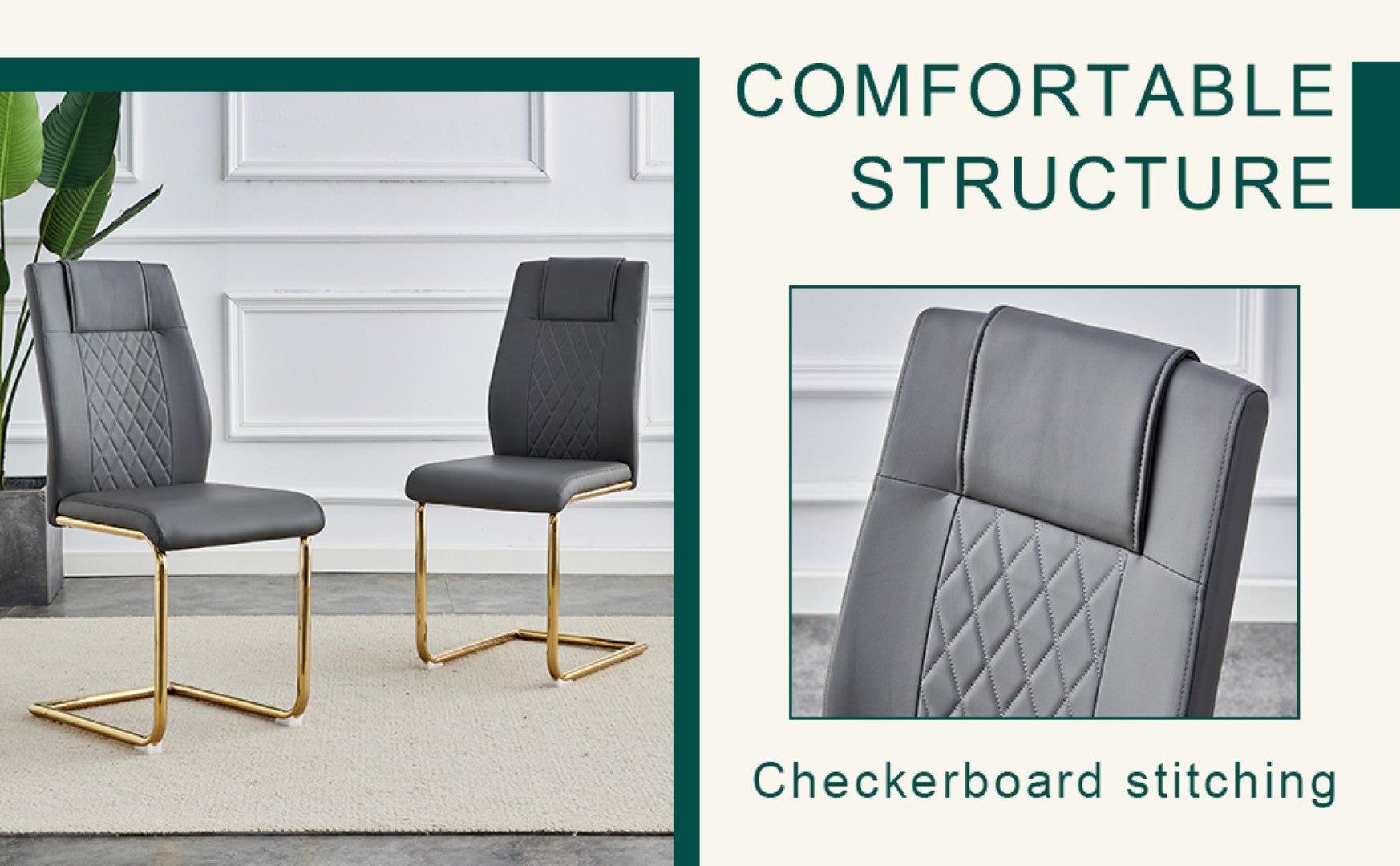 - Grid PU Backrest: The backrest and seat cushions of the dining chairs are made of PU material with grid patterns on backrest, enhancing the aesthetics and comfort of the seats, while being easy to clean and maintain.Sponge filled: The backrest is filled with sponge, providing soft and comfortable support.