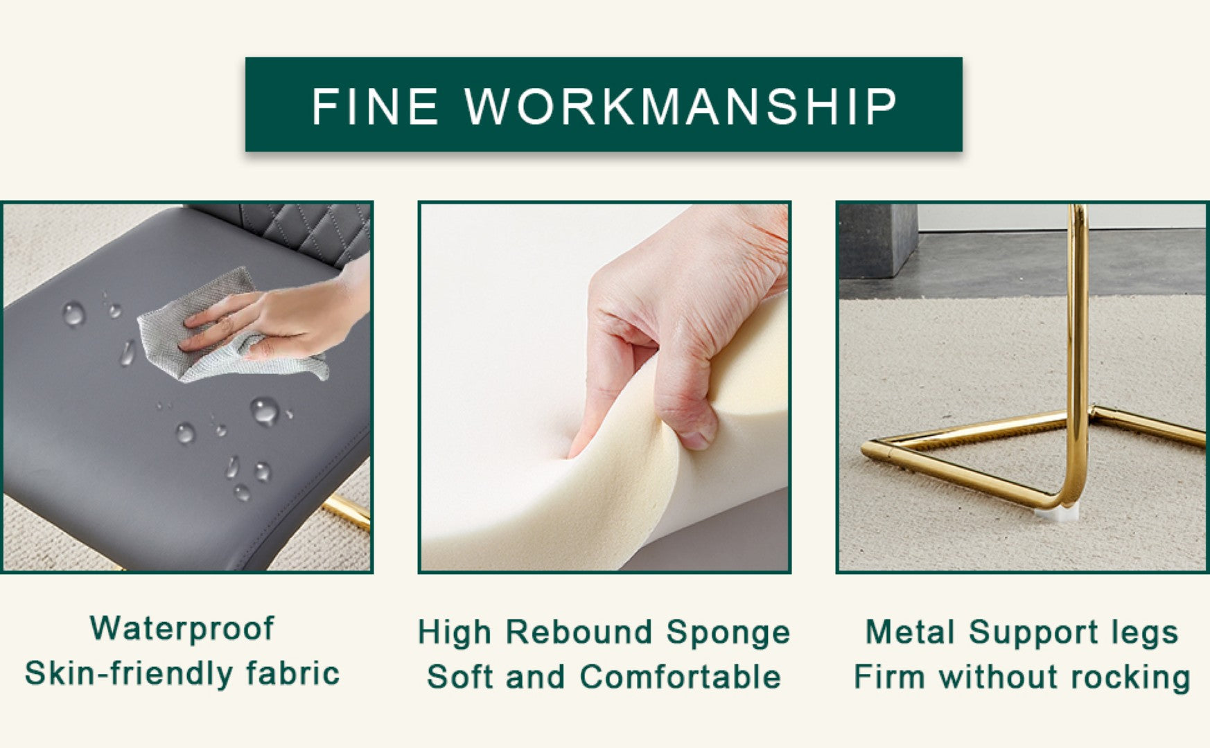 - Chair legs & protection: Arched gold metal legs for modern styling and strong support; anti-slip protective feet prevent scratches and improve safety.