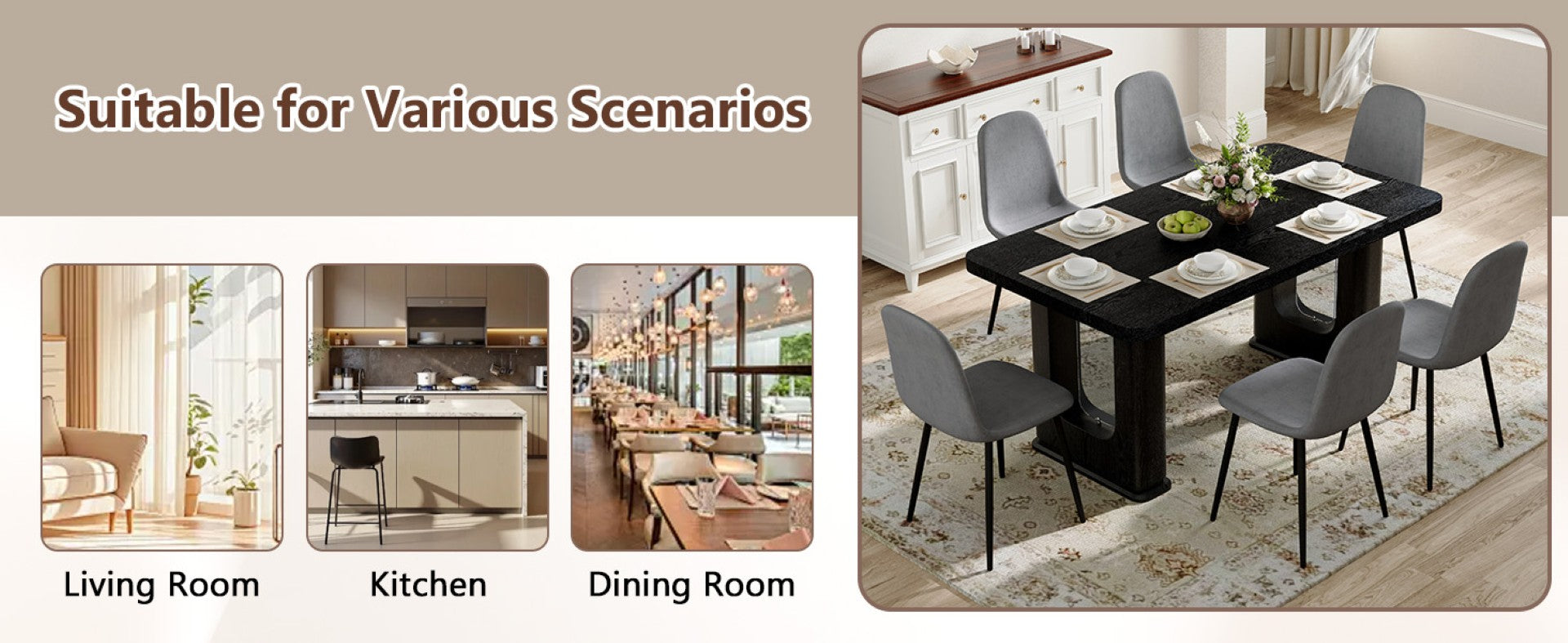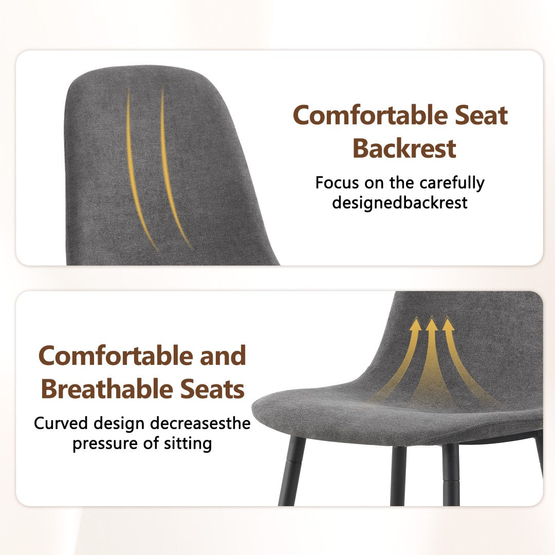 - Dark Grey Linen-Cotton Texture: The dining chairs are made of dark grey linen-cotton fabric, with integrated seat and backrest design, solid color style, breathable and soft comfort,offering a warm and comfortable touch while presenting an elegant home atmosphere.