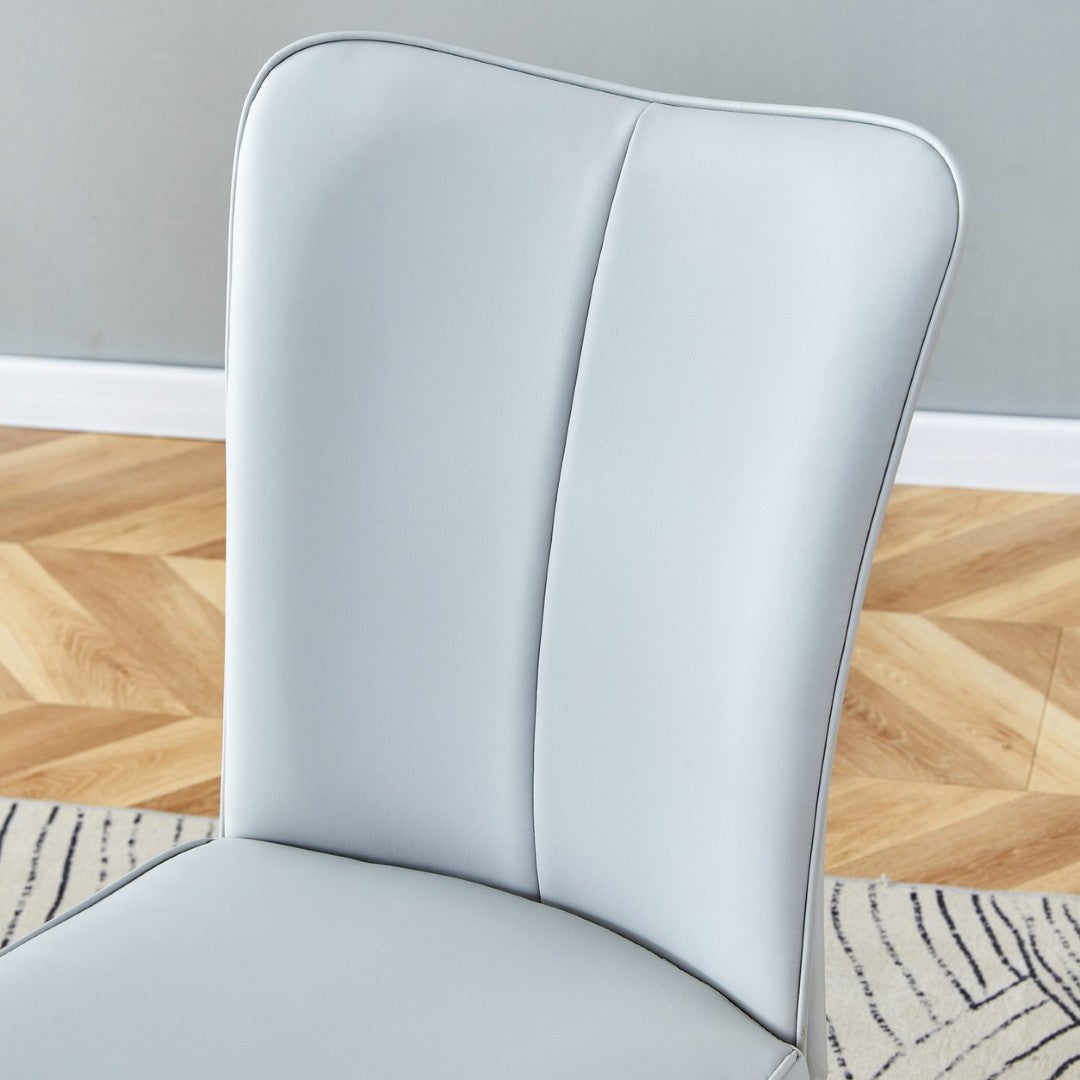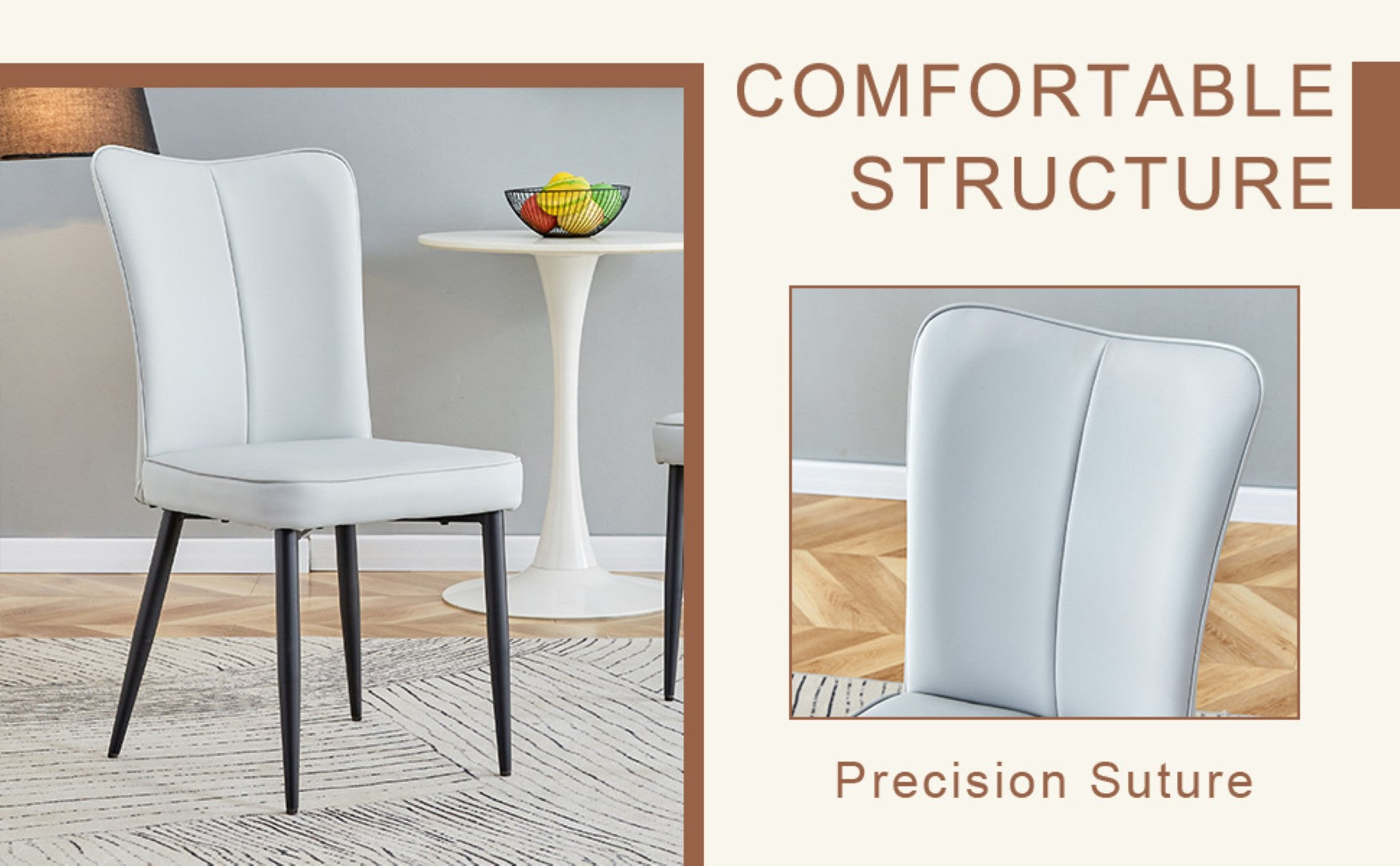 - The accompanying chairs are designed in light gray color, with black metal chair legs,simple yet luxurious.The chairs are filled with sponge for a soft and comfortable sitting experience.The chairs are designed according to ergonomics, providing a more comfortable sitting posture, with a vertical stripe design on the backrest.