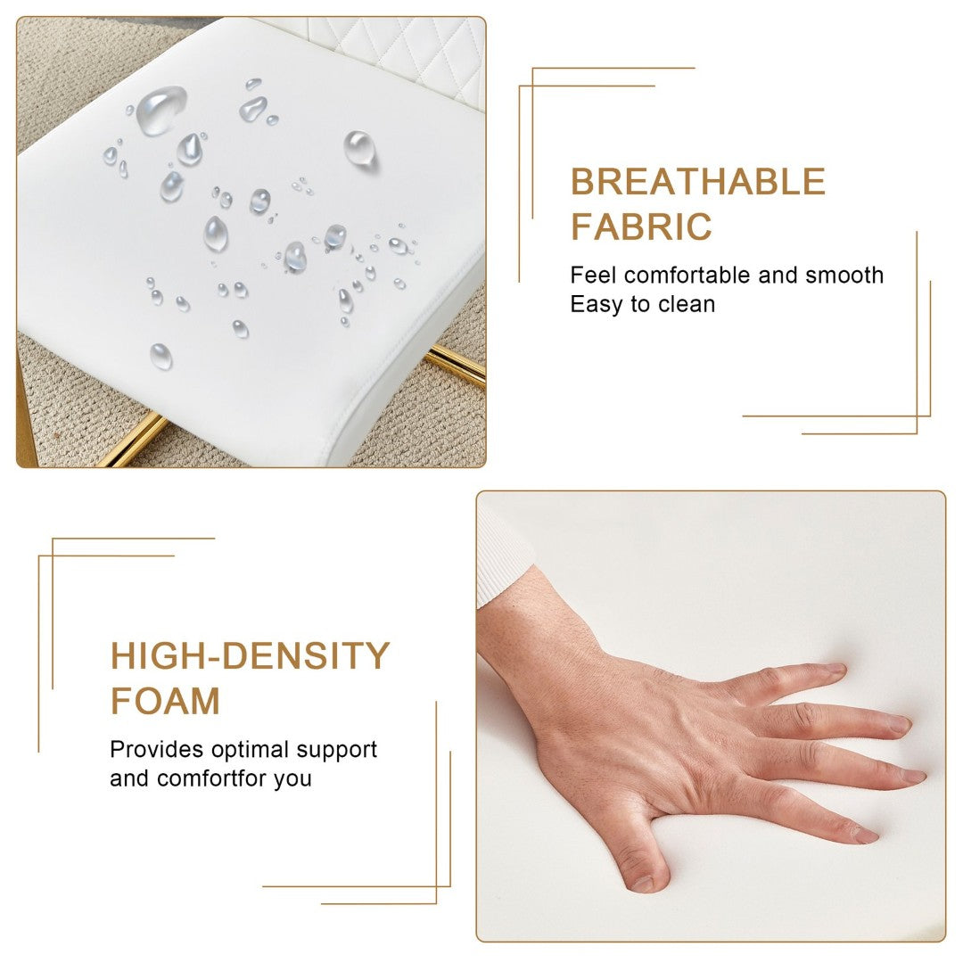 - Stable Arched Metal Legs: The gold arched metal legs not only add a sense of design but also provide strong support, ensuring the stability and durability of the chair.Keeping the secure of the seat during use.Anti-Slip Protective Feet: The anti-slip feet design at the bottom of the chair legs protects the floor from scratches and increases the safety of the chair during use.