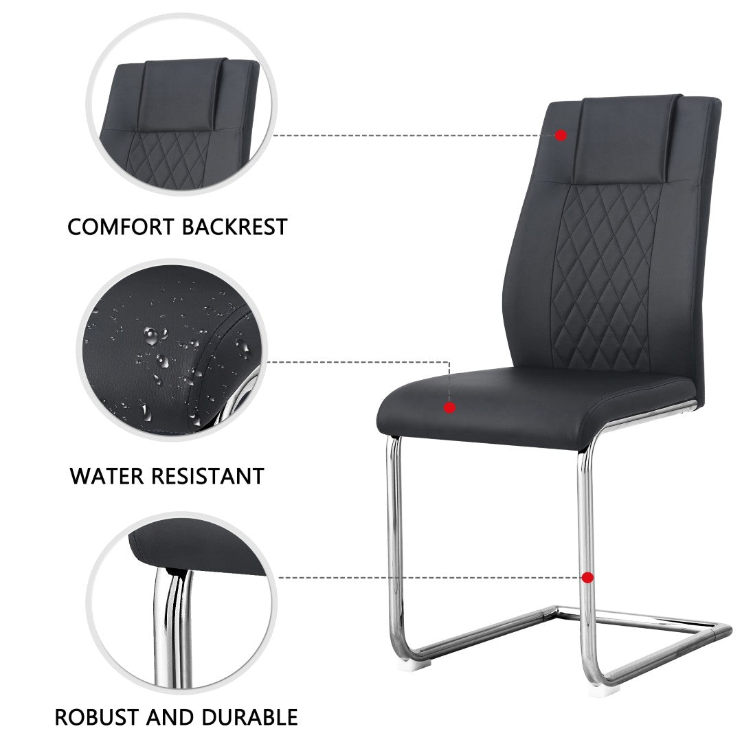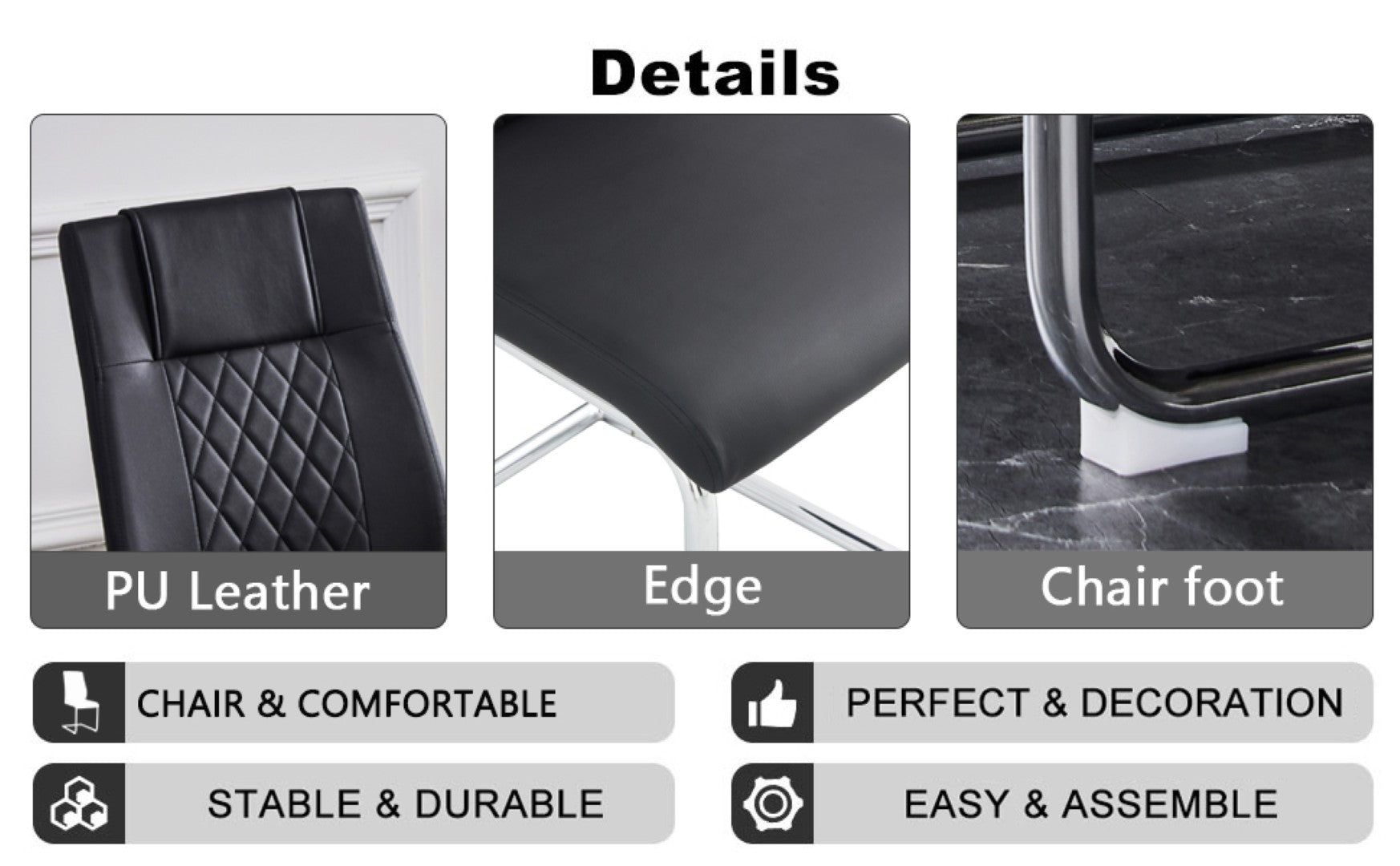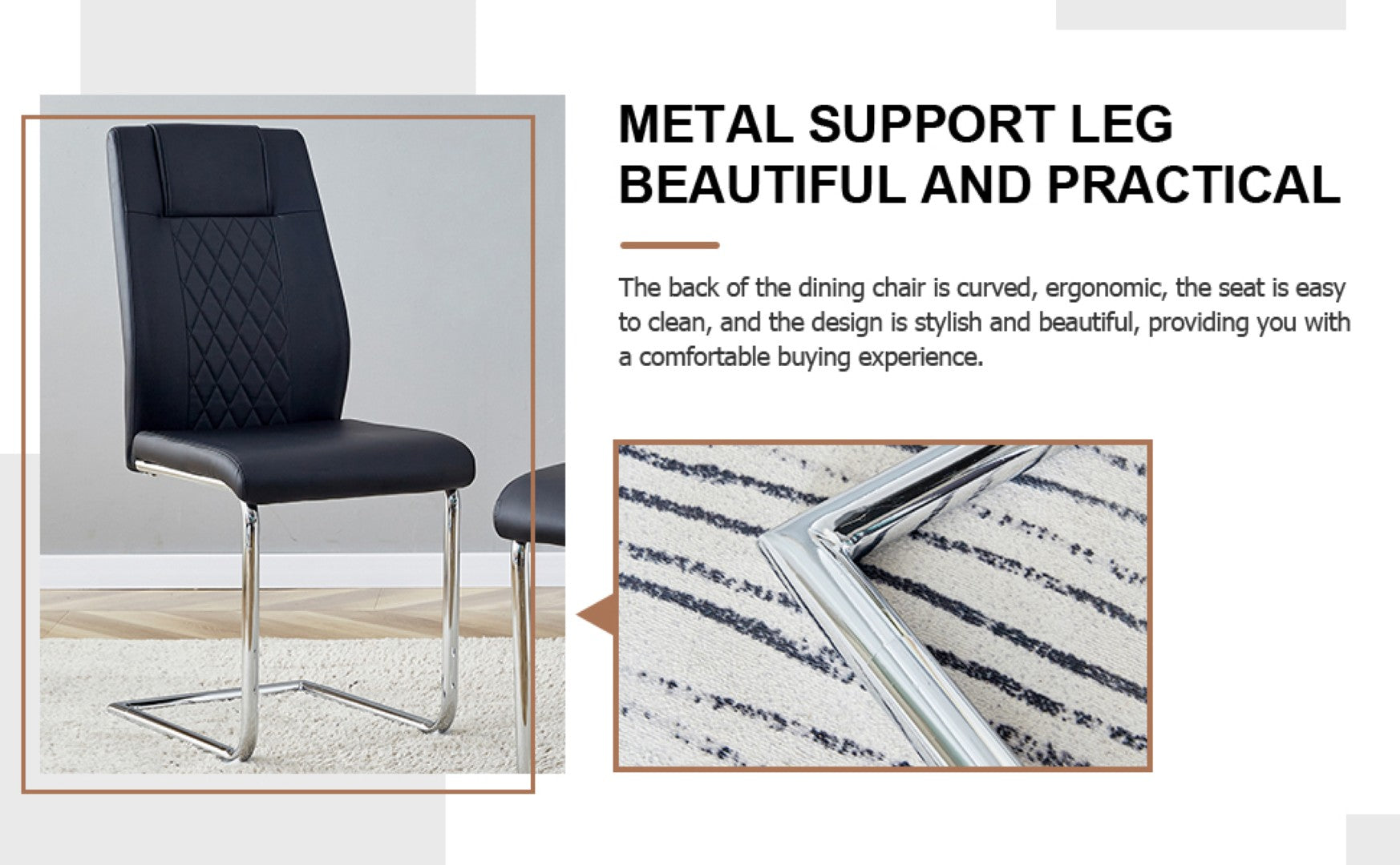 - Chair features: Grid-pattern PU backrest and seat with sponge padding for comfort; silver arched metal legs for sturdy support and contemporary style; anti-slip protective feet to prevent scratches and slipping.