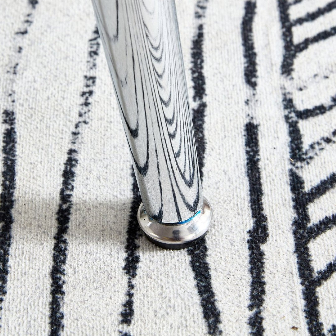 - Stable Arched Metal Legs: The silver arched metal legs not only add a sense of design but also provide strong support, ensuring the stability and durability of the chair.Keeping the secure of the seat during use.Anti-Slip Protective Feet: The anti-slip feet design at the bottom of the chair legs protects the floor from scratches and increases the safety of the chair during use.