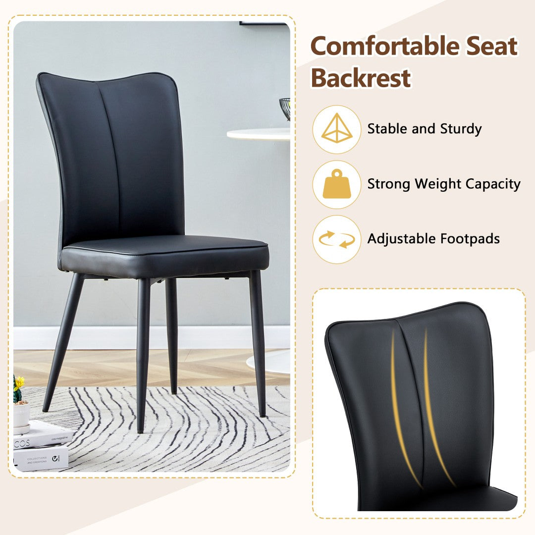 - PU Material for Comfort: The black chairs are made of PU material, with a vertical line design on the backrest that adds aesthetic detail while offering a soft and comfortable seating experience.