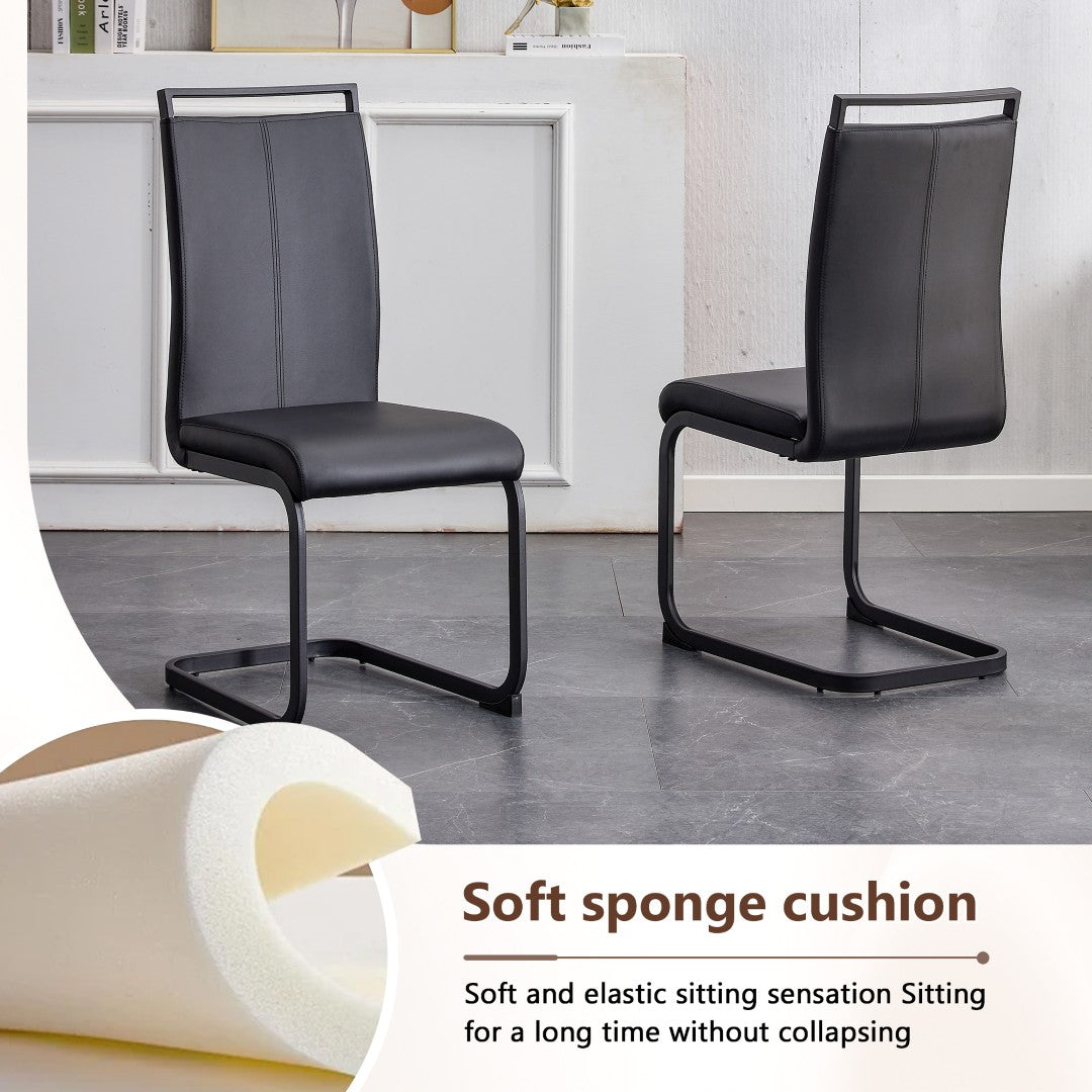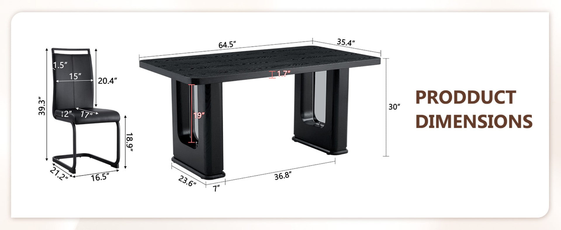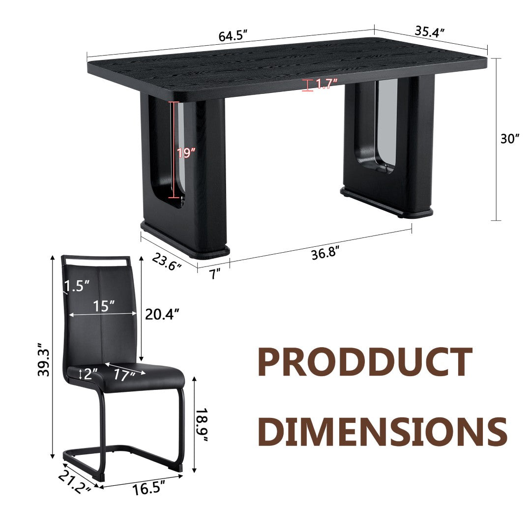 Elevate your dining space with this contemporary black wood–textured table paired with four sleek black PU chairs. Designed for style and everyday comfort, the set combines a spacious, durable tabletop with ergonomically cushioned seats and fashion-forward arched metal legs for a cohesive modern look that suits family meals and entertaining alike.