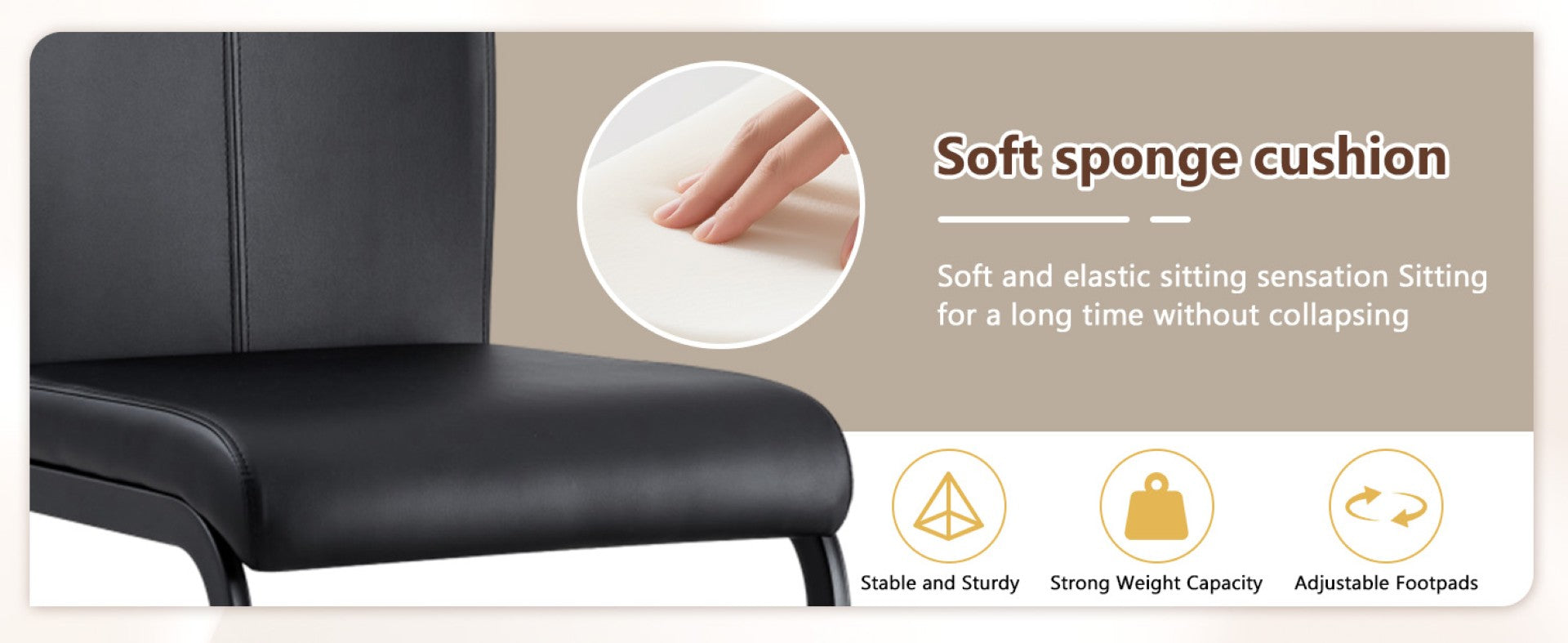 - Stable Arched Metal Legs: The black arched metal legs not only add a sense of design but also provide strong support, ensuring the stability and durability of the chair.Anti-Slip Protective Feet: The anti-slip feet design at the bottom of the chair legs protects the floor from scratches and increases the safety of the chair during use.
