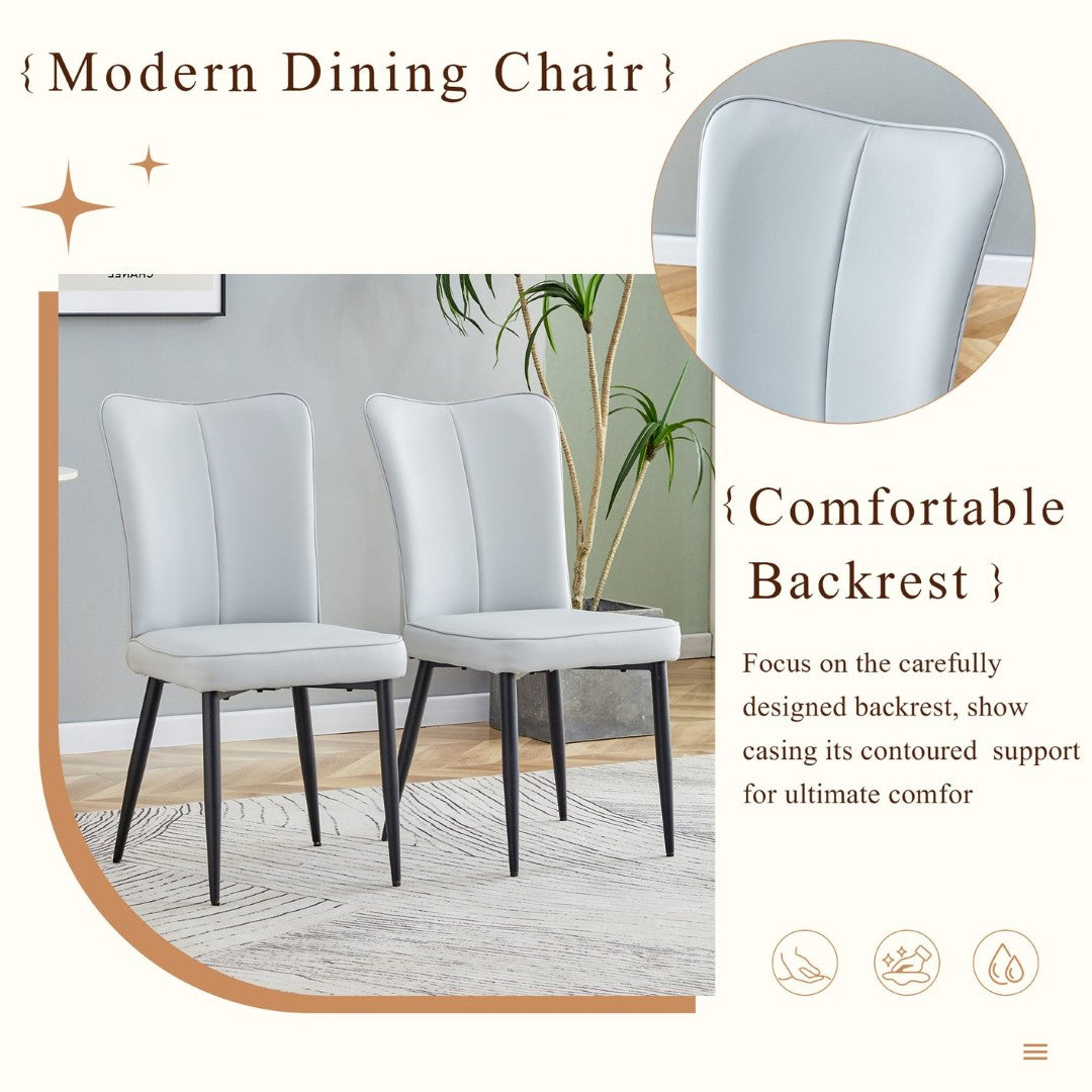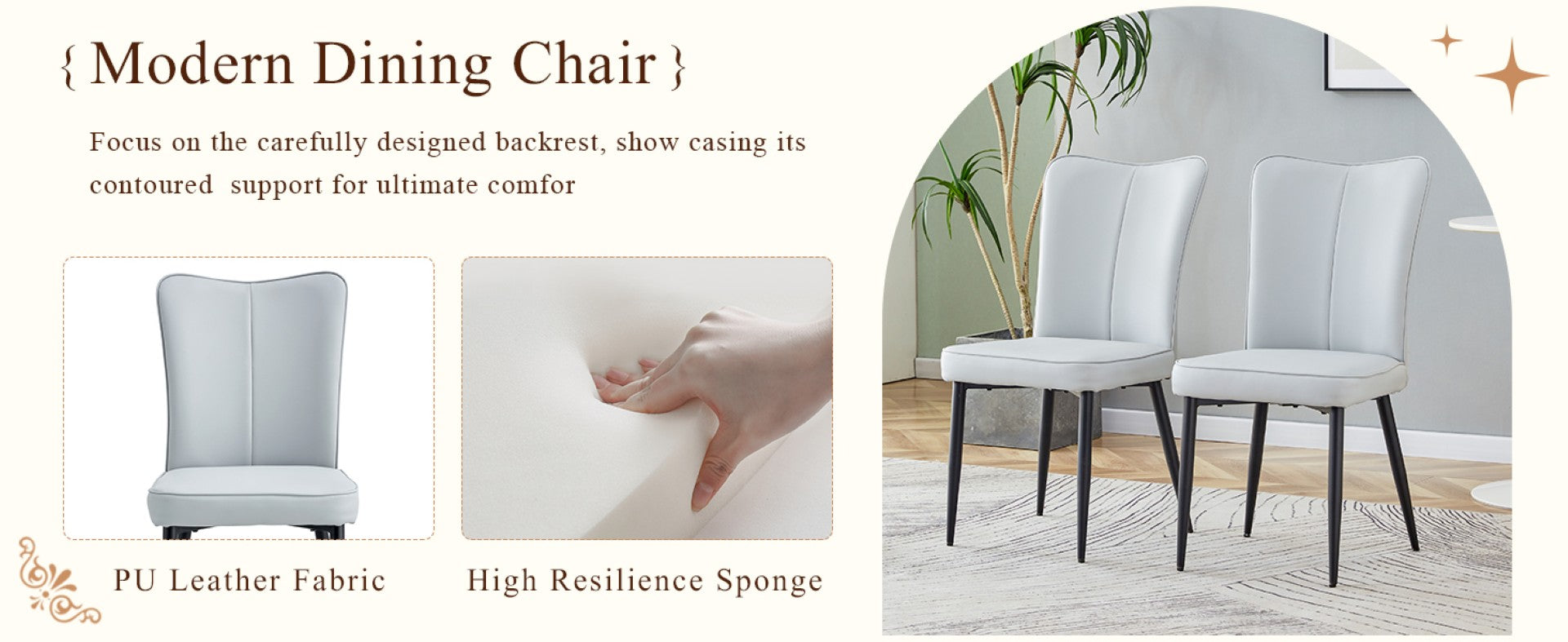 - PU Material for Comfort: The light gray chairs are made of PU material, with a vertical line design on the backrest that adds aesthetic detail while offering a soft and comfortable seating experience.