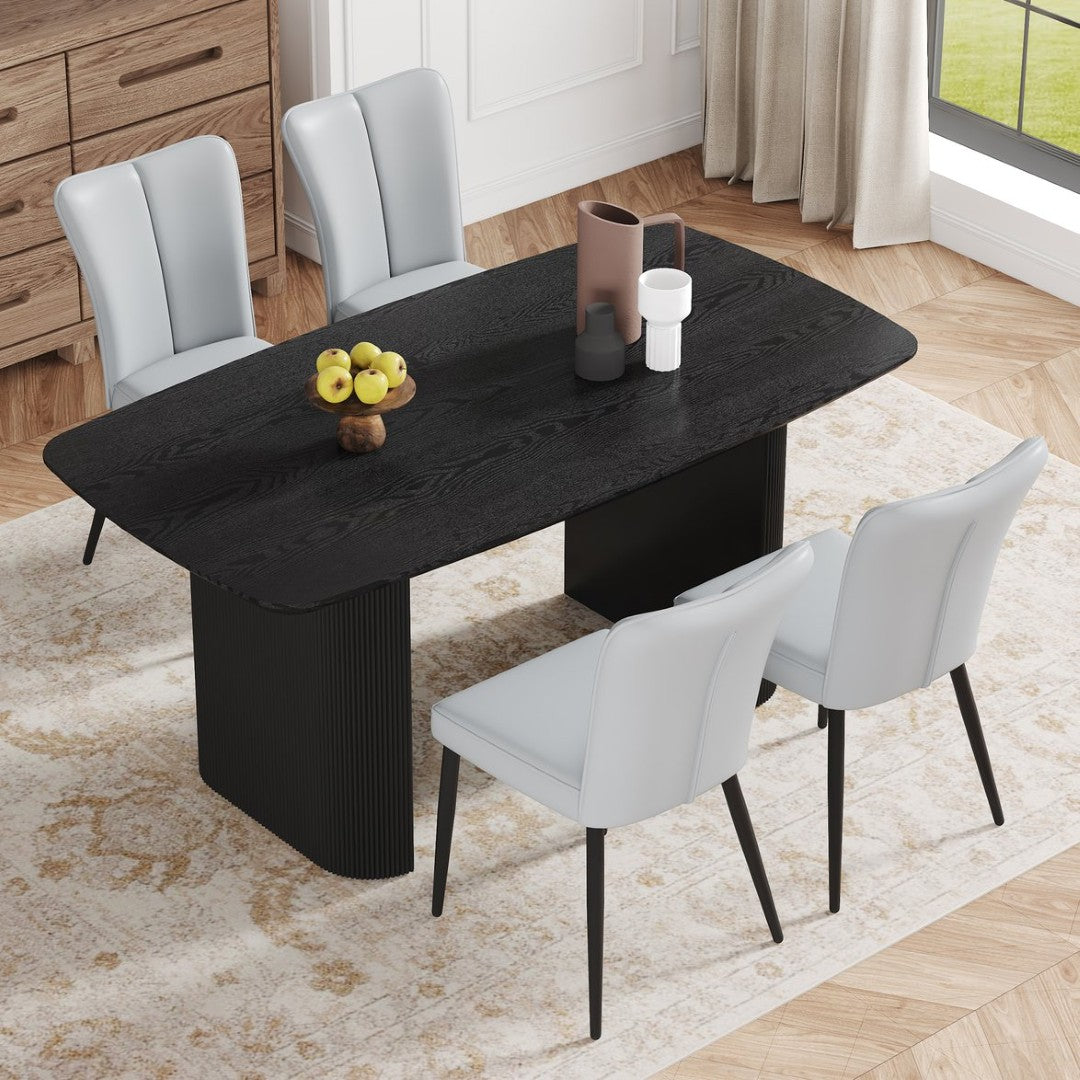 Elevate your dining space with this modern yet understated table and chair set, designed for daily family use and stylish entertaining. The set pairs a spacious black wood-grain MDF table with four light‑gray PU-upholstered chairs, combining durable materials, comfortable seating, and a refined aesthetic that fits contemporary, Nordic, and light‑luxury interiors.