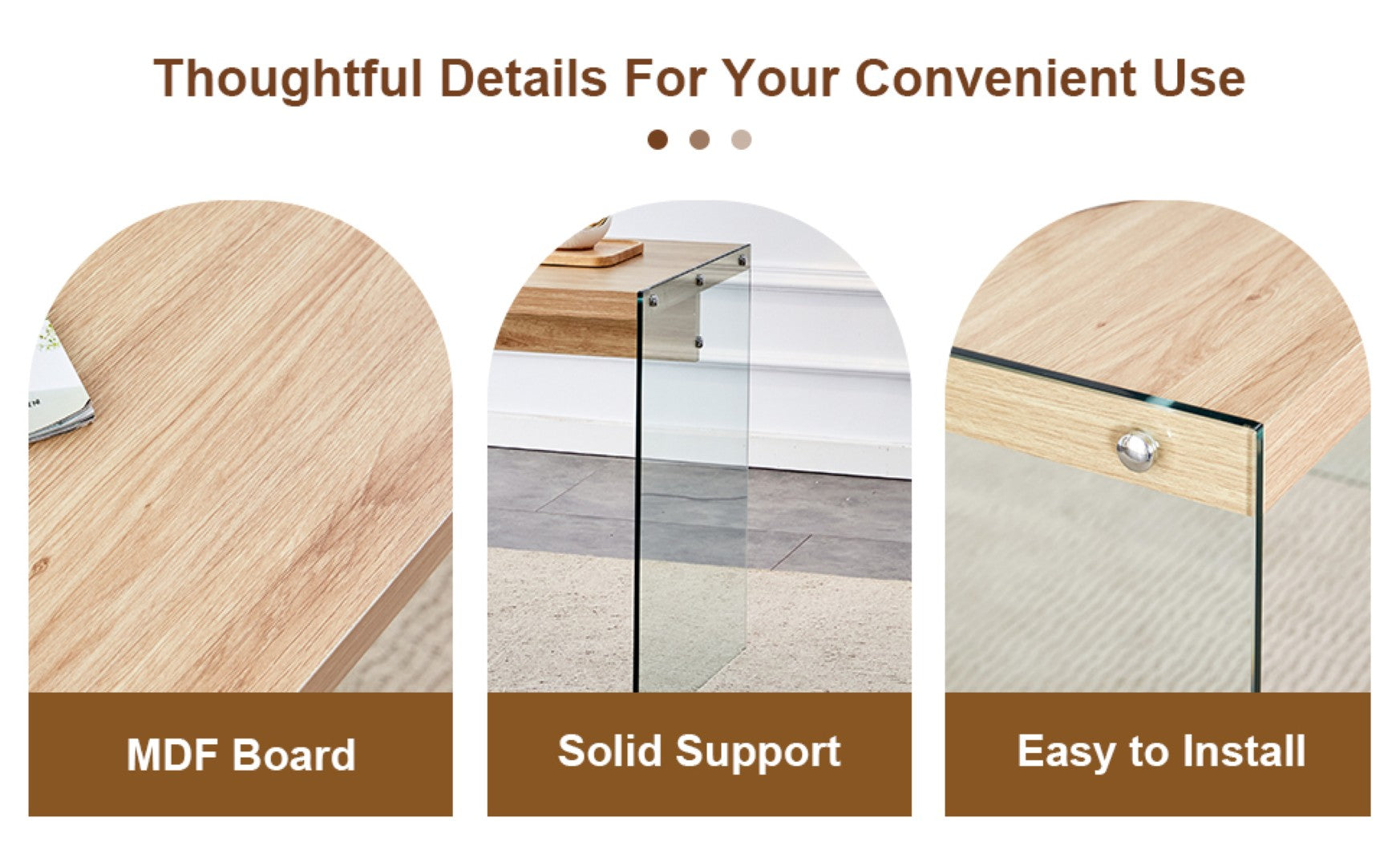 - Tempered glass reinforcement: Two tempered glass panels on the table sides increase structural stability and add a modern visual accent.