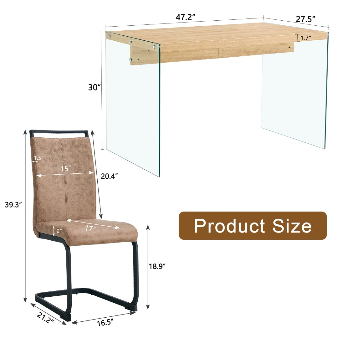 Bring contemporary style and everyday functionality to your dining or living area with this modern table and chair set. The set pairs a wood-textured MDF coffee table reinforced with tempered glass supports and anti-slip feet with four comfortable brown technology fabric chairs featuring sculpted black arched legs — a cohesive combination of durability, comfort, and clean-lined design ideal for casual meals, coffee breaks, or entertaining.