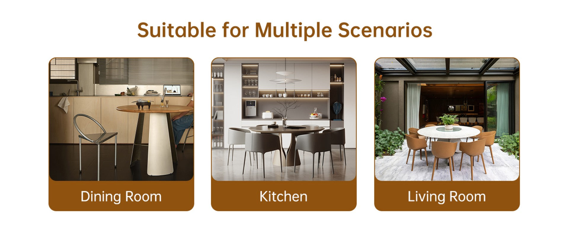 - Round Extendable Table Top: The table features a round MDF table top with a clever extendable mechanism, allowing you to adjust the table size according to your needs, perfect for family gatherings or dinner parties.High-Quality MDF Table Top: Crafted from white MDF material with textured patterns, the table top offers a solid and durable surface, with its elegant textures adding a touch of natural beauty to every dining experience.