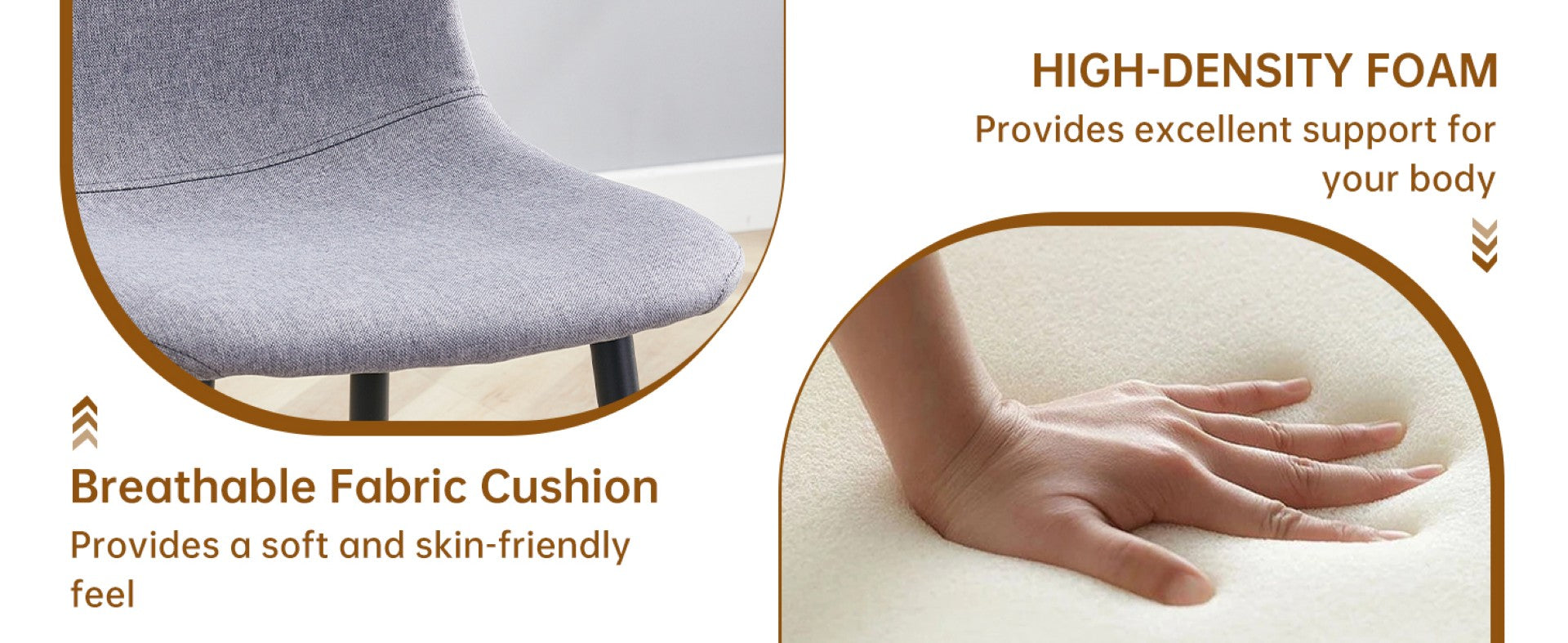 - Linen-Cotton Material: The chairs are made of light gray linen-cotton, naturally breathable, offering excellent comfort.Easy to Clean: The linen-cotton material is easy to clean and maintain, keeping the chairs fresh and new.