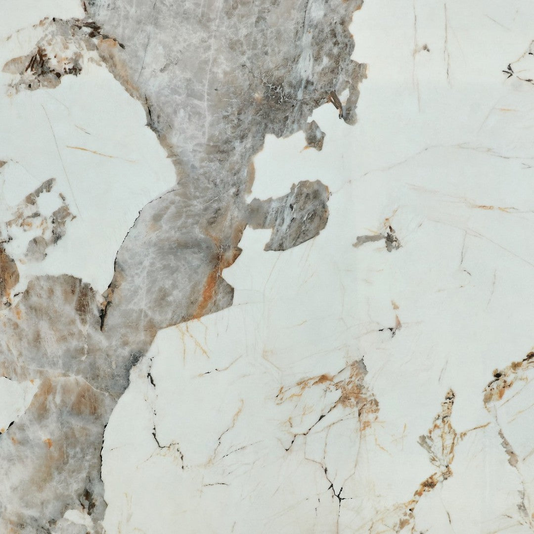 - The white Pandora patterned glass tabletop complements the golden C-shaped table legs perfectly. The purity and agility of the stone pattern perfectly blend with the luxury and elegance of the table legs. Whether placed in the living room, dining room, or studio, it can become the focal point of the space.